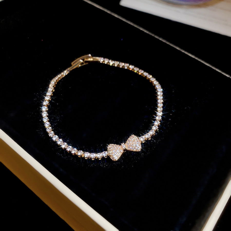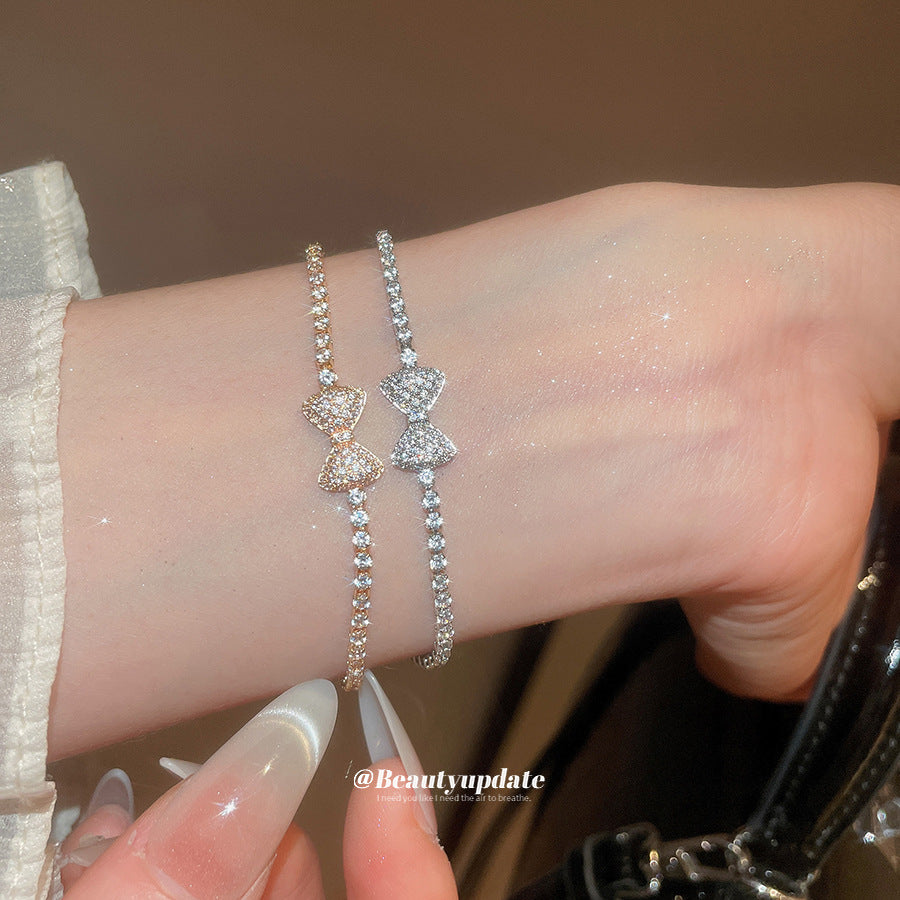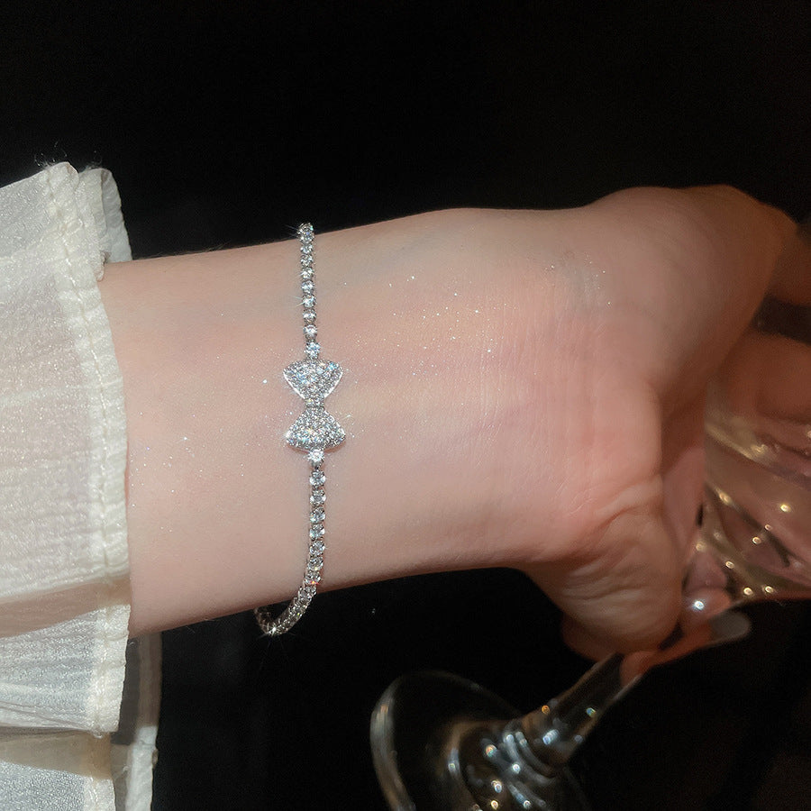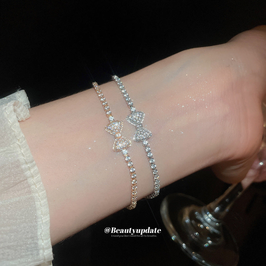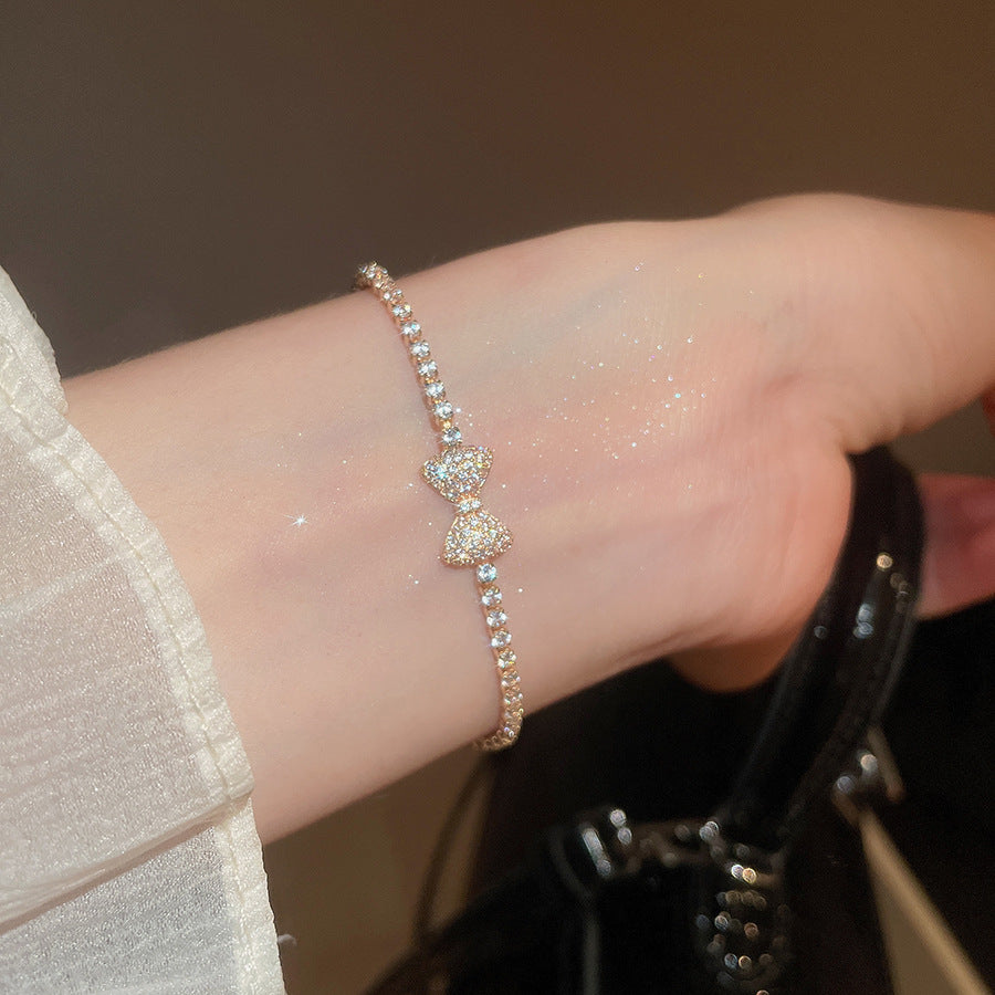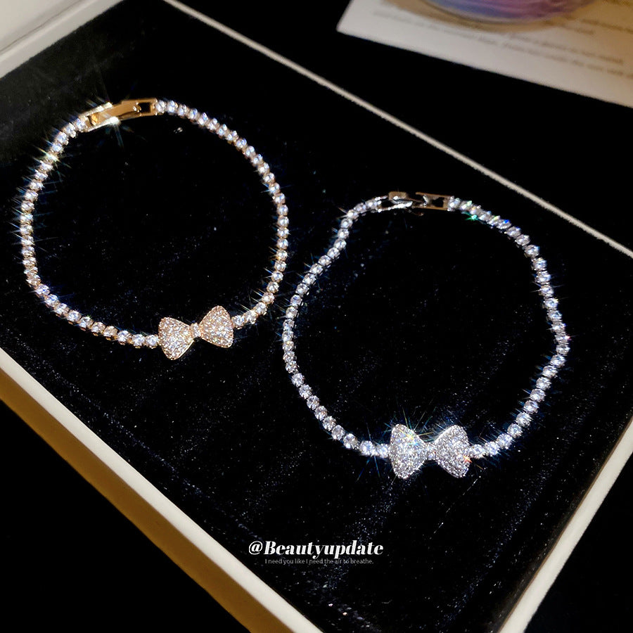 A廠【HB4402】超閃鋯石蝴蝶結吊墜卡扣手鍊歐美優雅氣質手環精緻輕奢高級感手飾 25.08-2