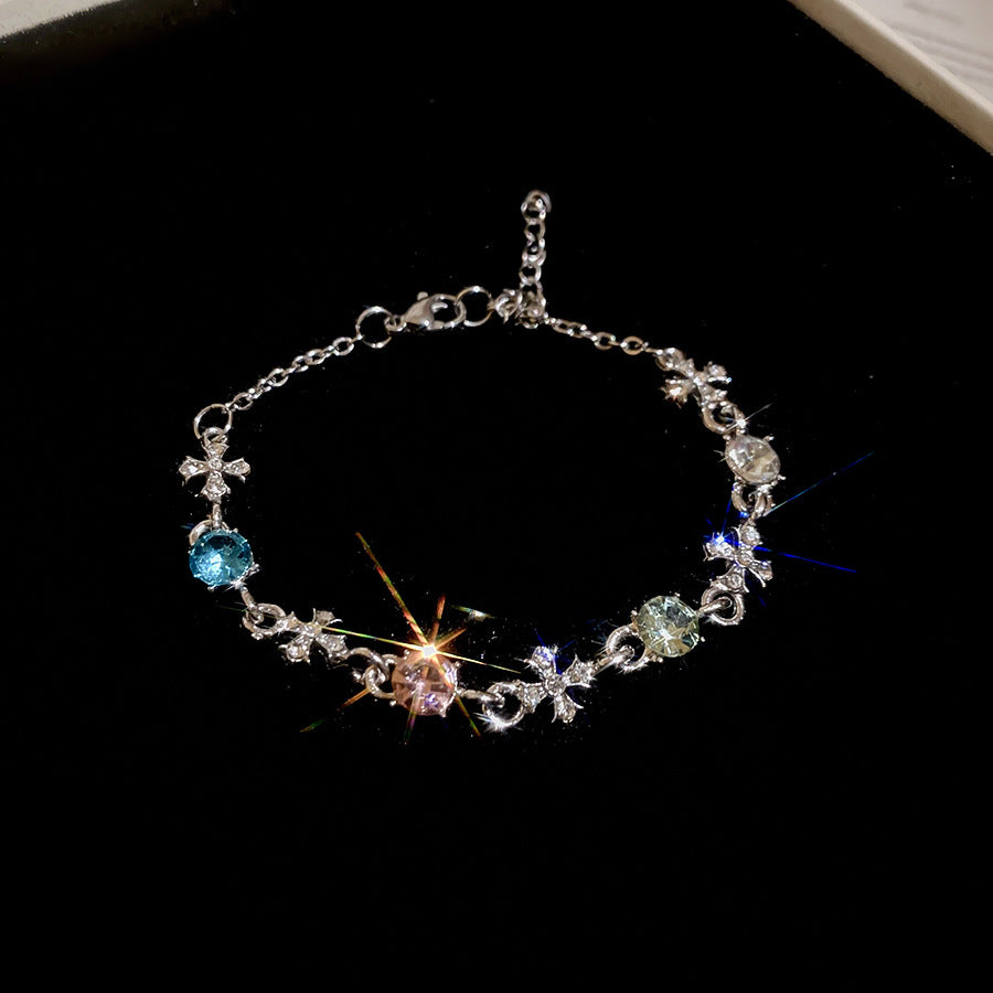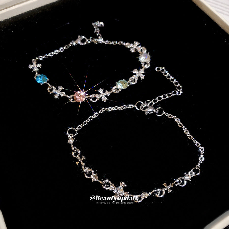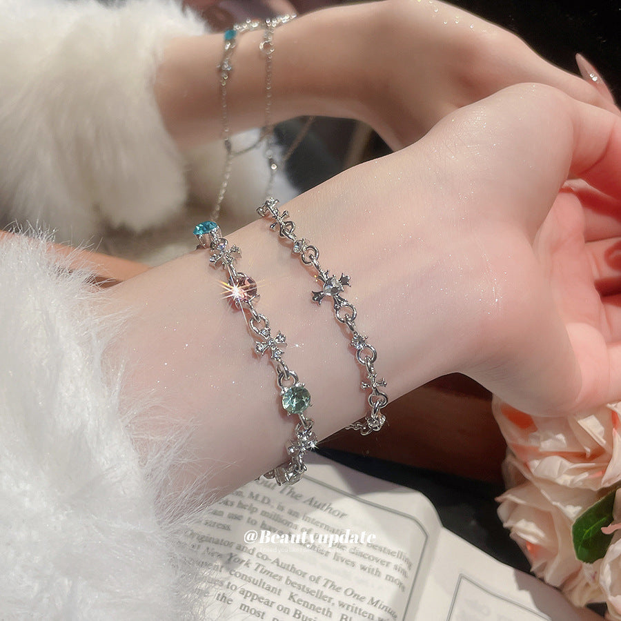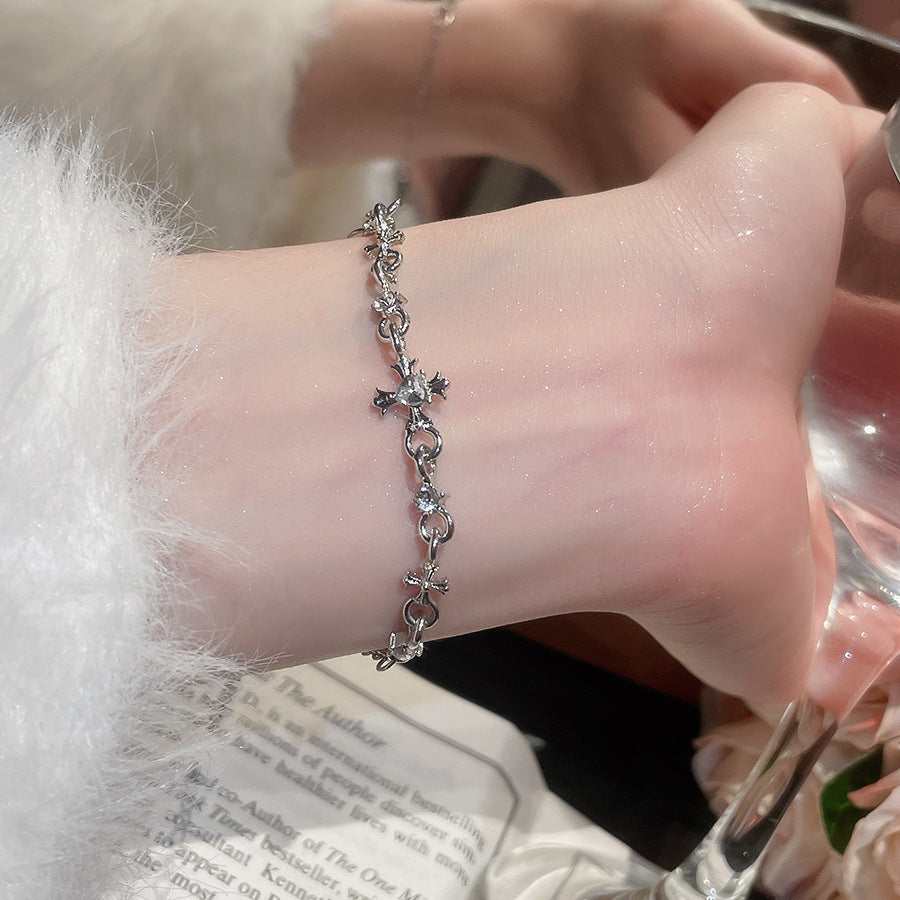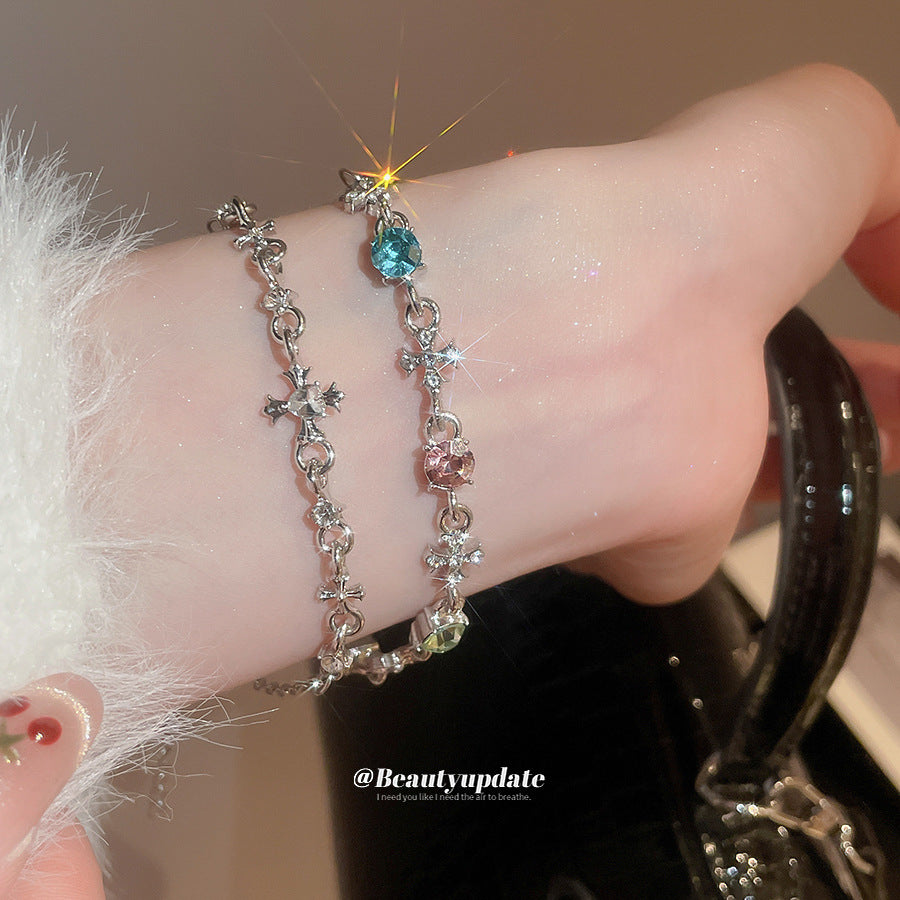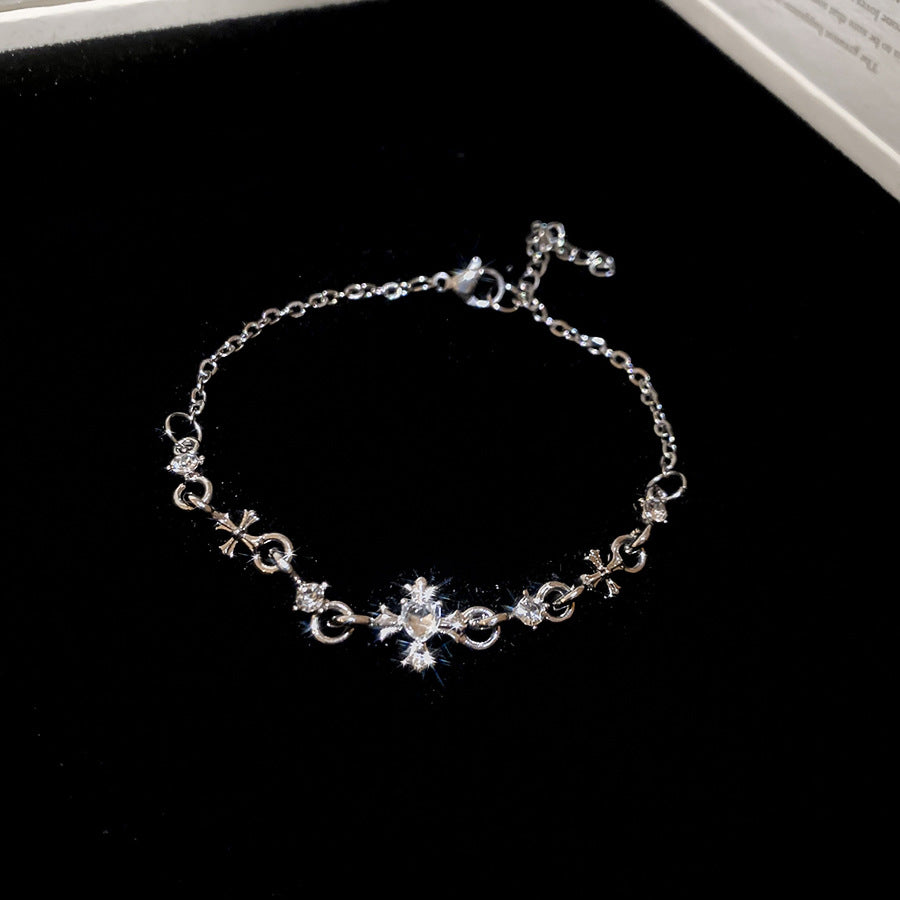 A廠【HB4447】超閃鑲鑽圓形十字架吊墜手鍊時尚百搭手環精緻輕奢高級感手飾 25.08-5