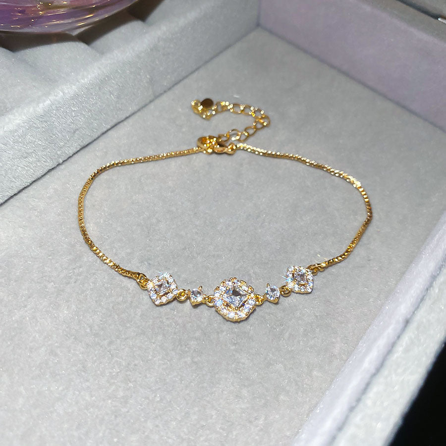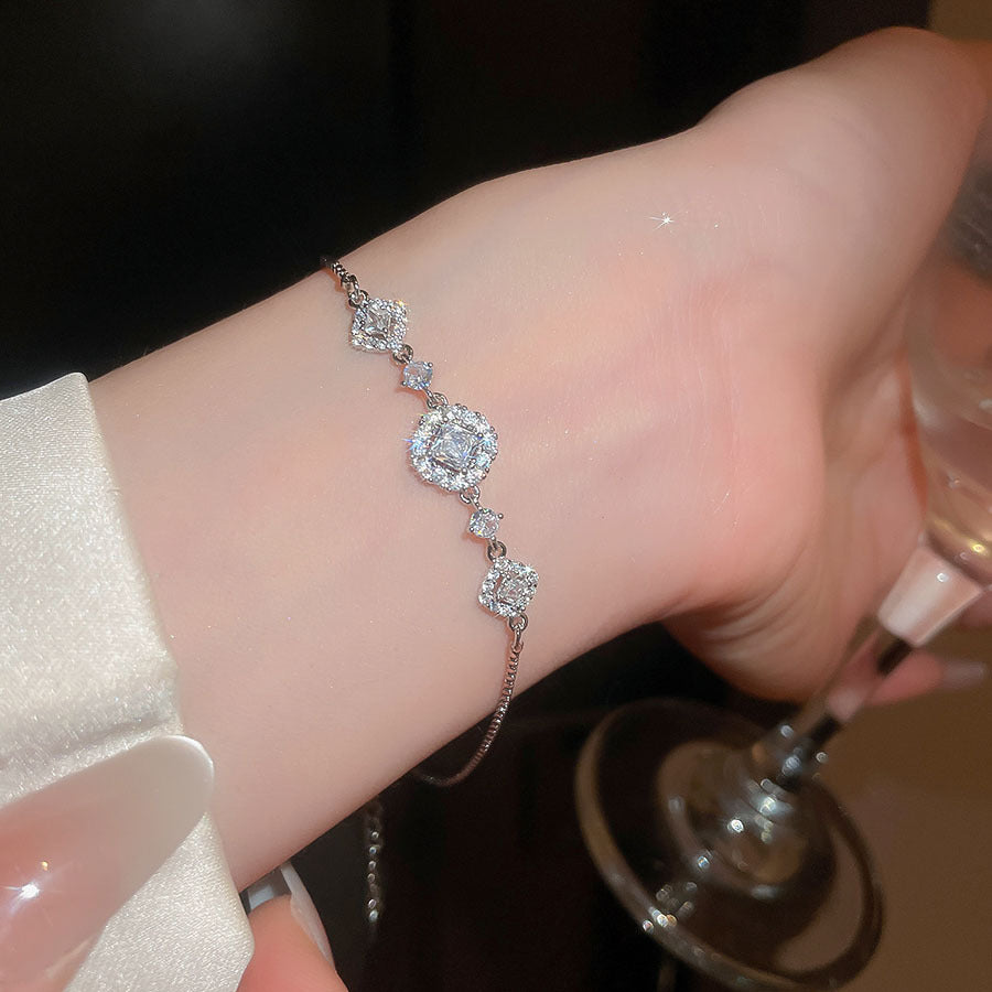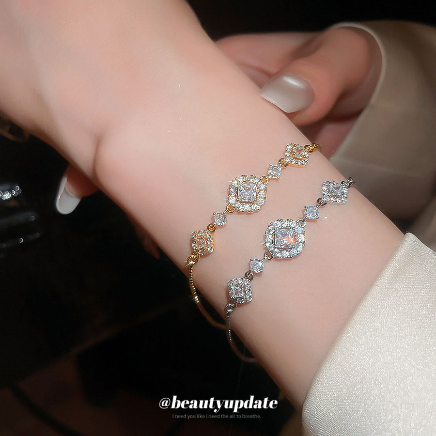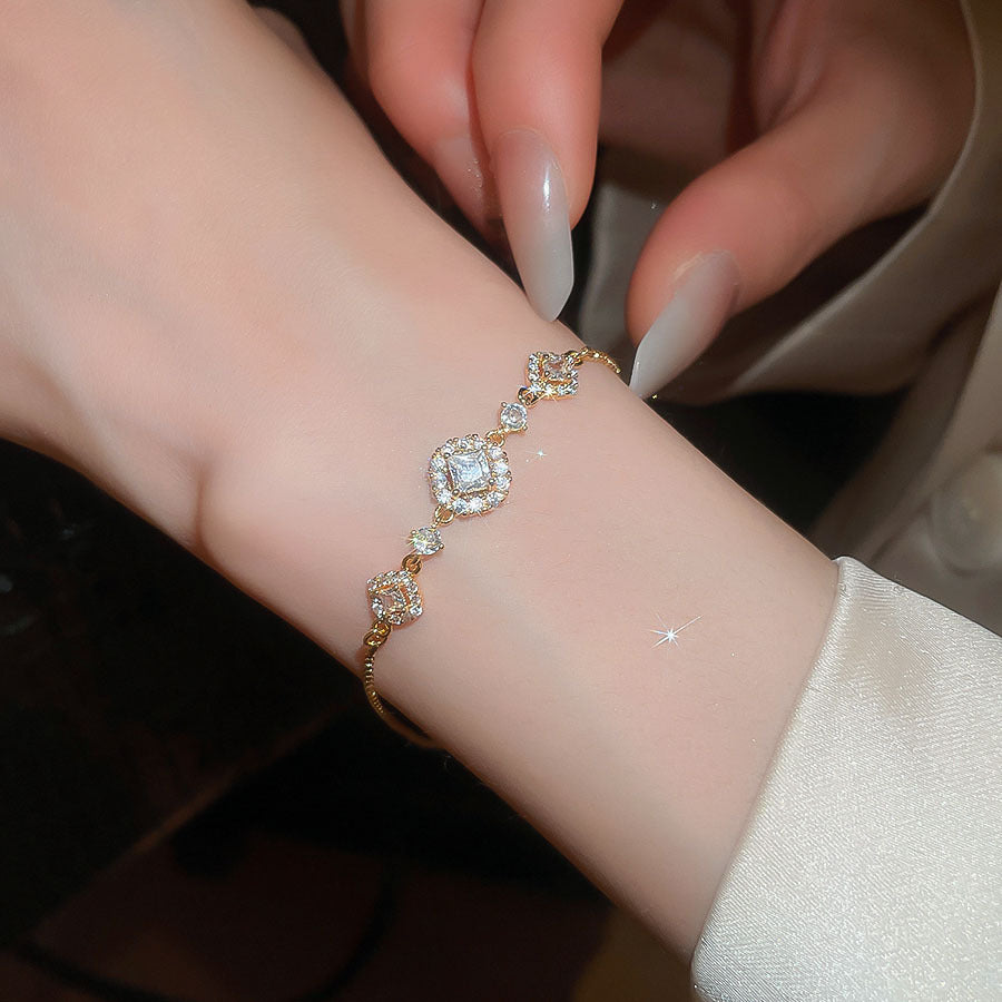 A廠【HB4567】超閃鋯石圓形鏤空吊墜手鍊時尚百搭氣質手環奢華輕奢高級感手飾女 25.09-3