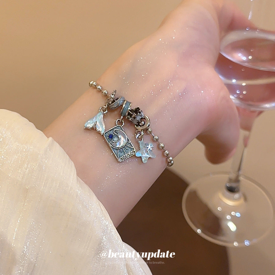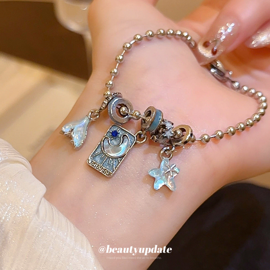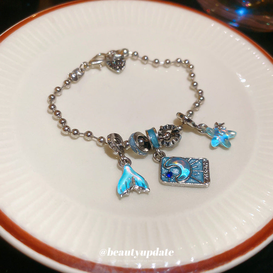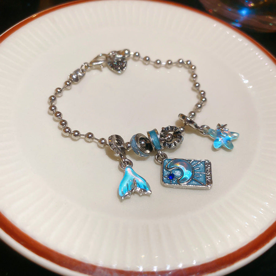A廠【HB4572】滴油樹脂魚尾星星方形月亮吊墜手鍊海邊度假風手環輕奢高級感手飾 25.09-3