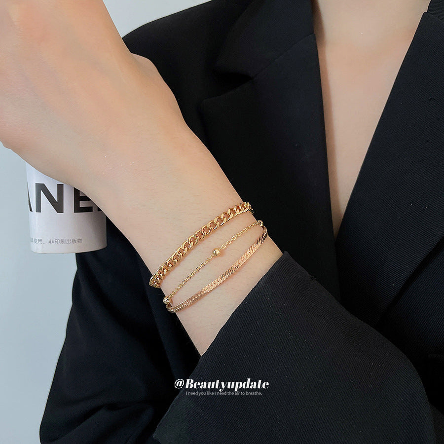 A廠【HB4601】歐美跨國金屬感蛇鍊手鍊三件組時尚百搭氣質手環小眾設計感手飾女 25.10-1