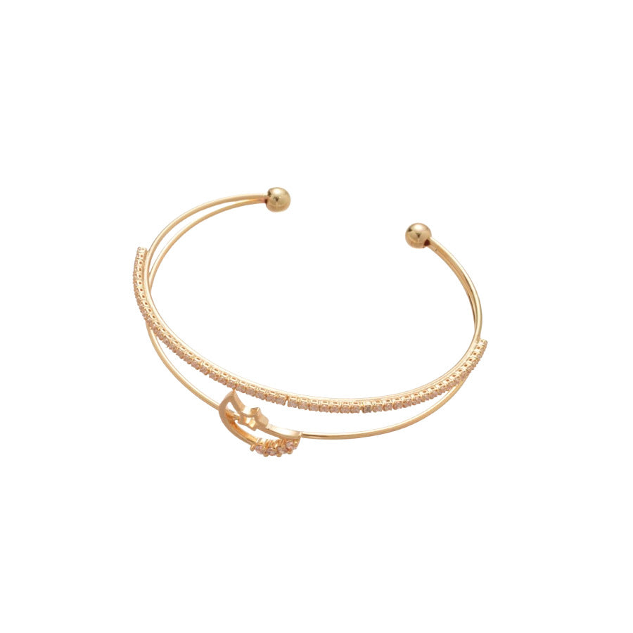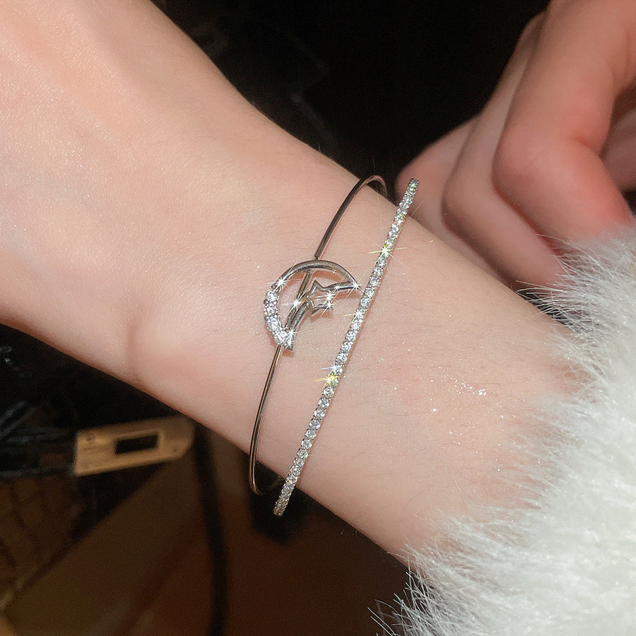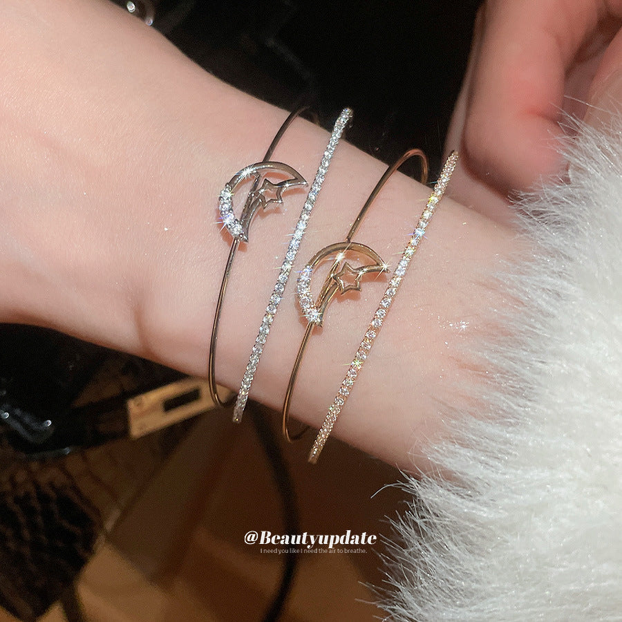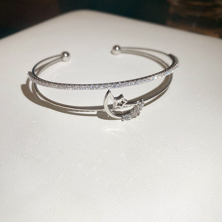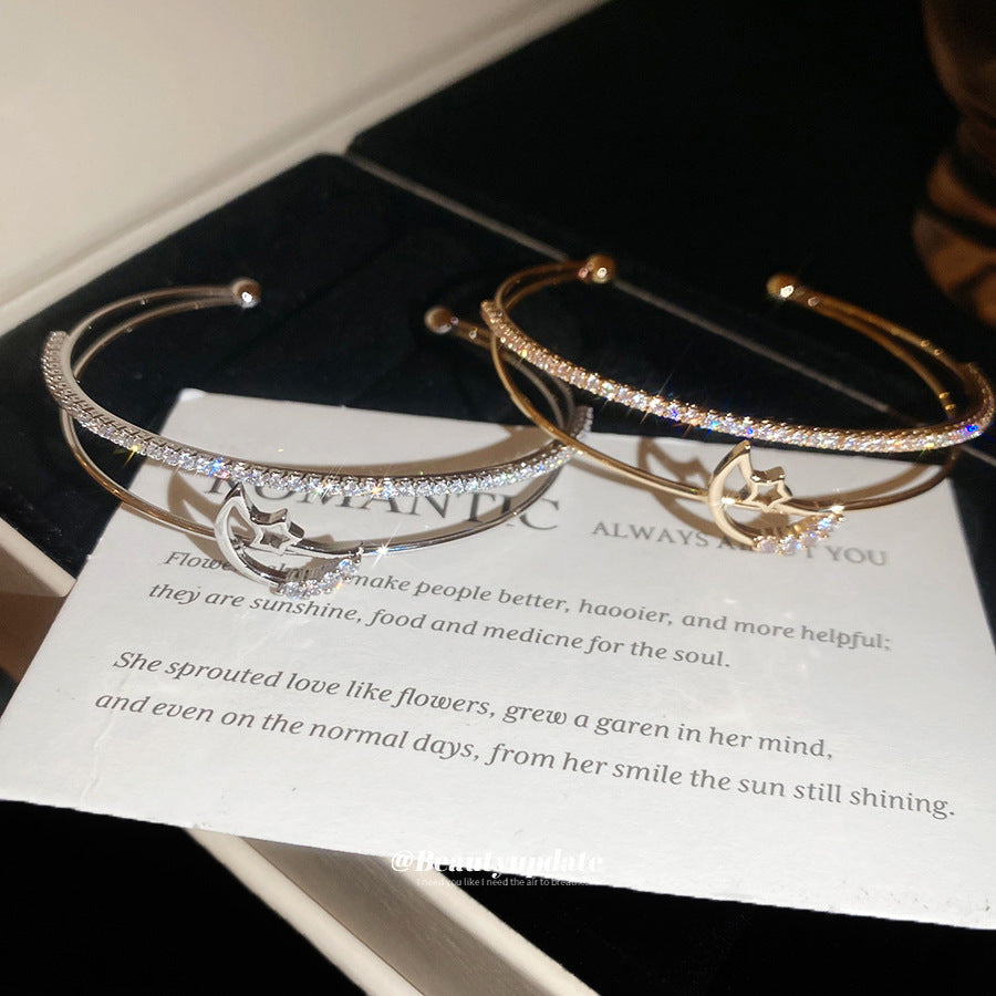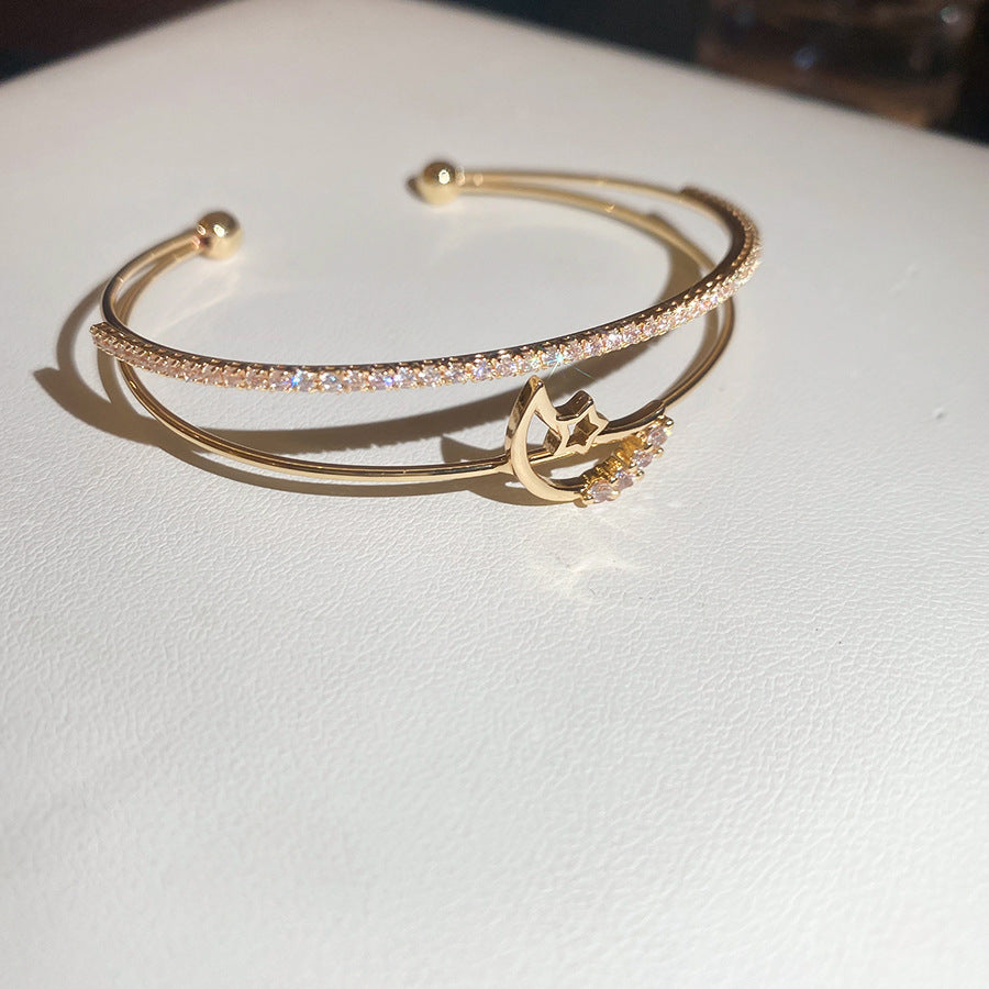 A廠【HB4630】超閃鋯石月亮雙層開口手鐲時尚簡約百搭氣質手環輕奢高級感手飾女 25.10-1