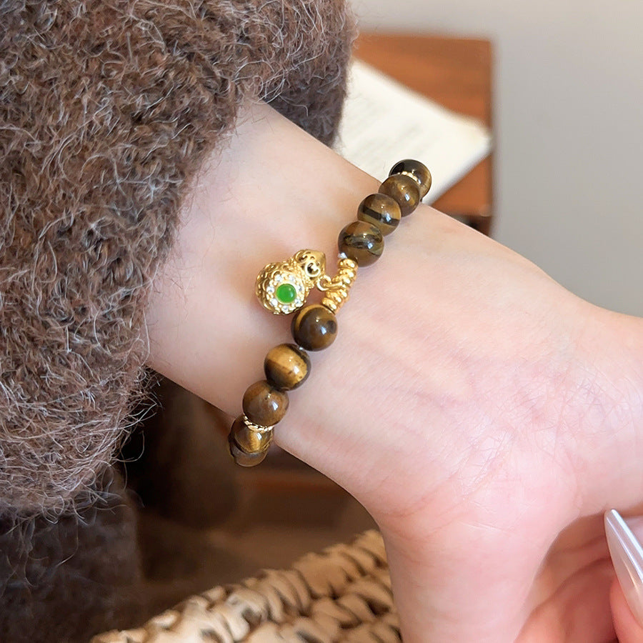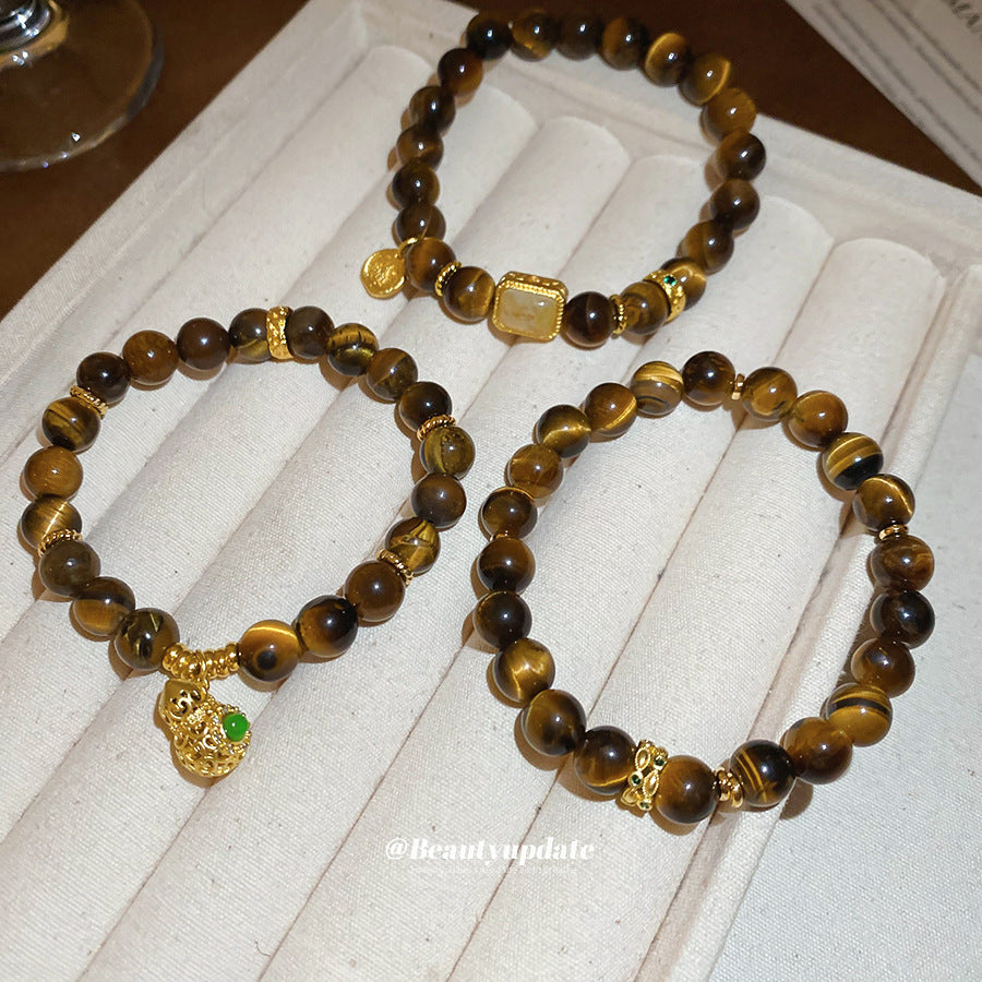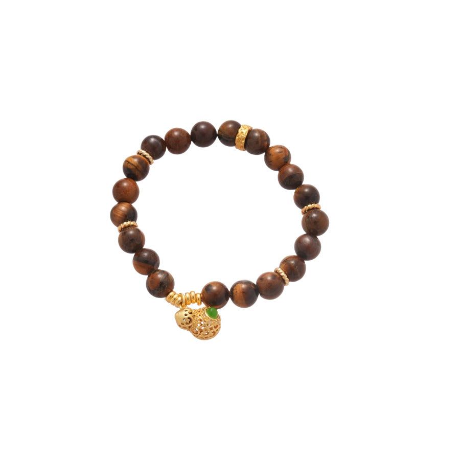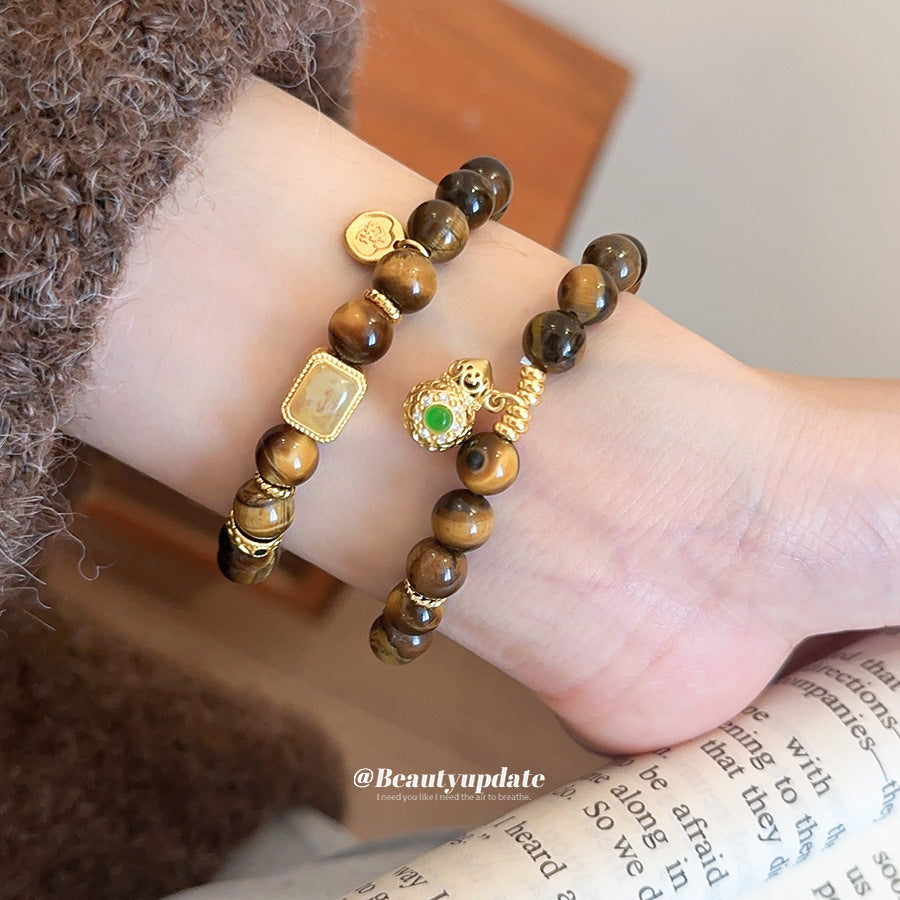A廠【HB4631】新中式虎眼石串珠葫蘆方形鏤空吊墜美拉德風手串小眾設計感手飾女 25.10-1