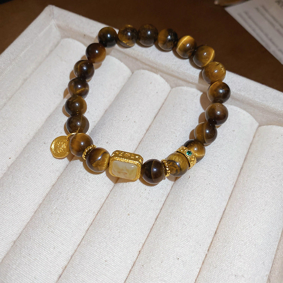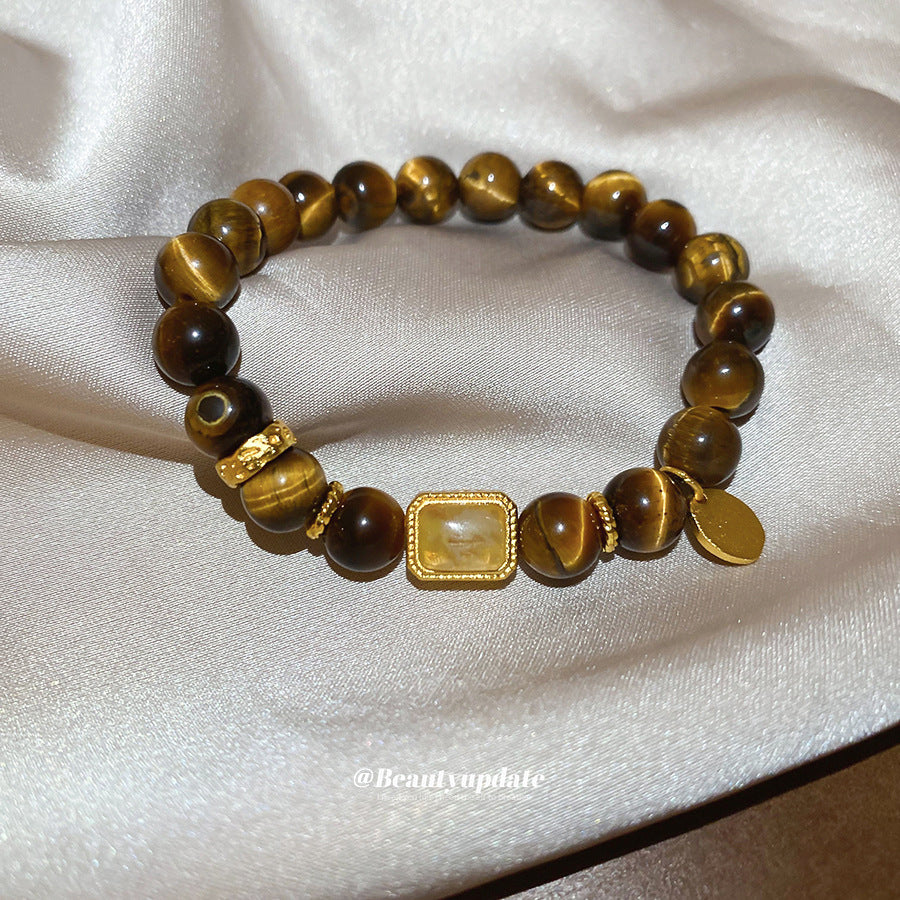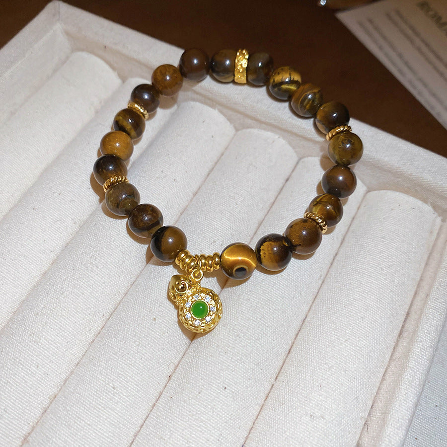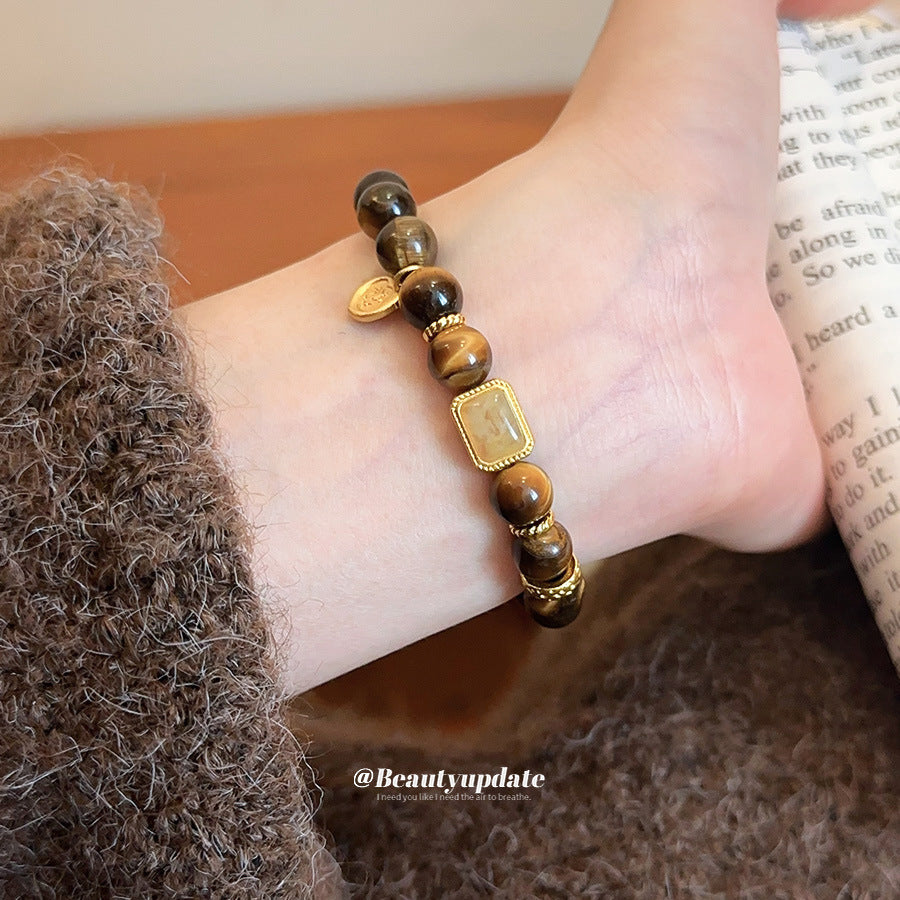 A廠【HB4631】新中式虎眼石串珠葫蘆方形鏤空吊墜美拉德風手串小眾設計感手飾女 25.10-1