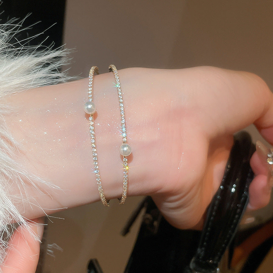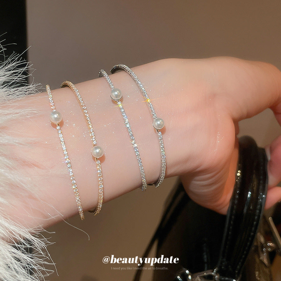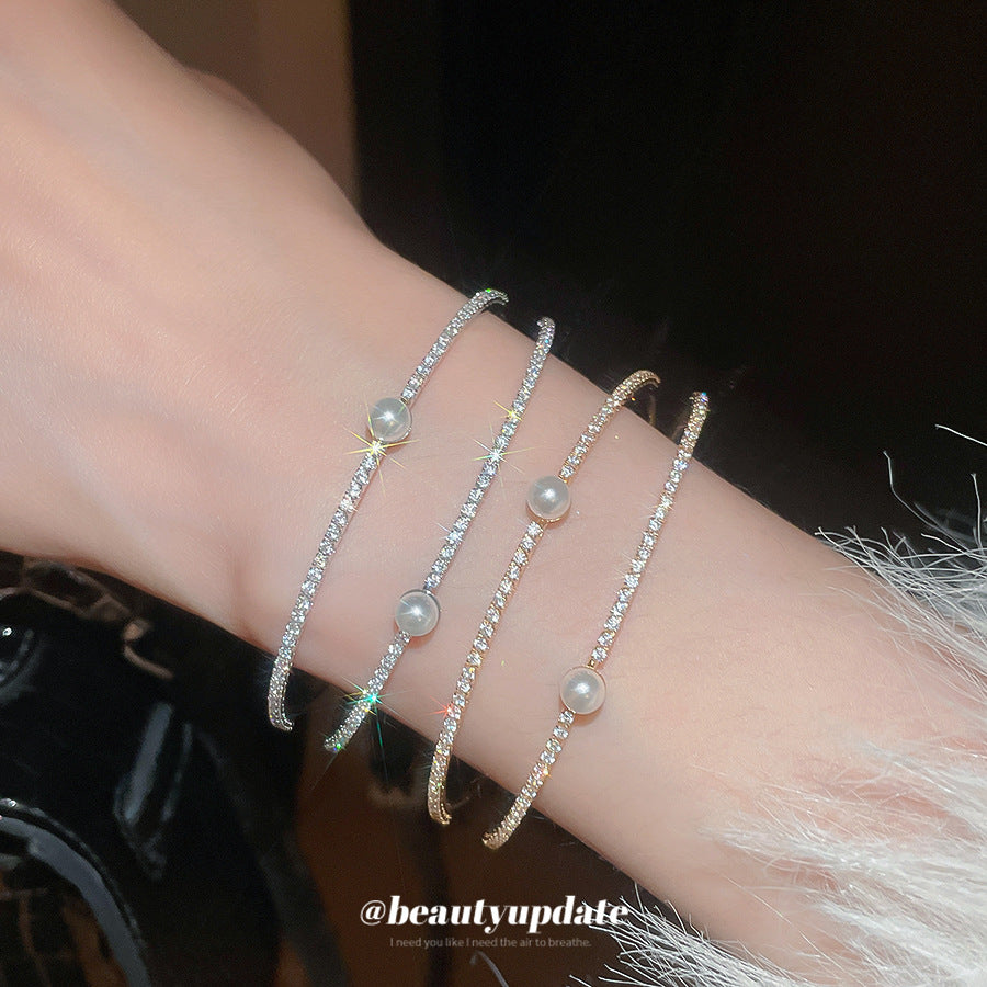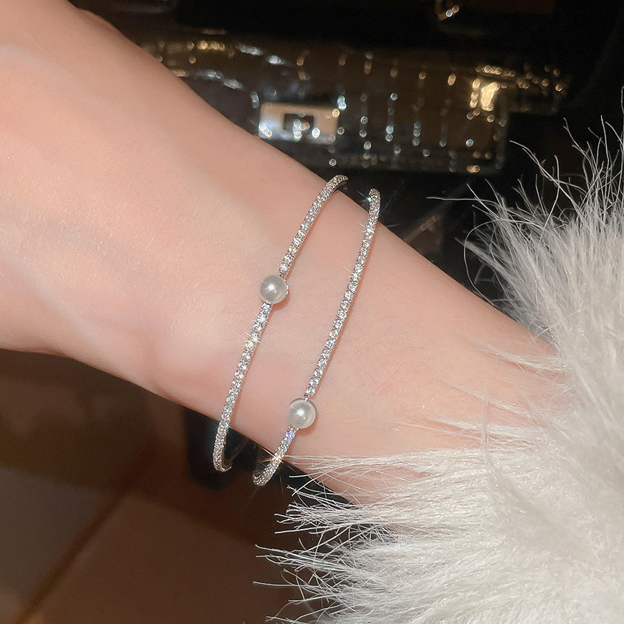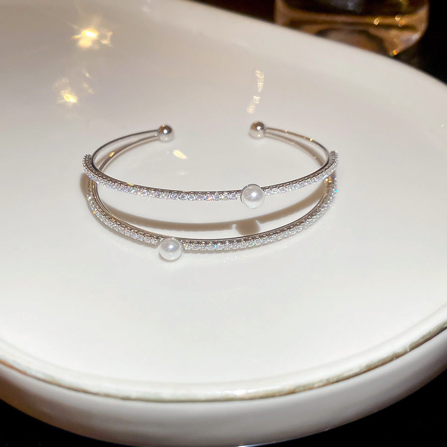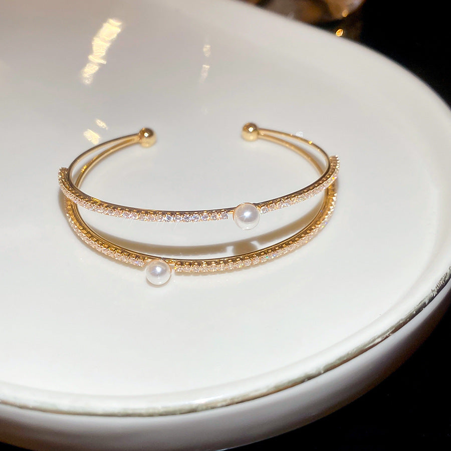 A廠【HB4776】超閃鋯石珍珠雙層開口手鐲歐美潮流百搭氣質手環輕奢高級感耳飾女 25.10-4