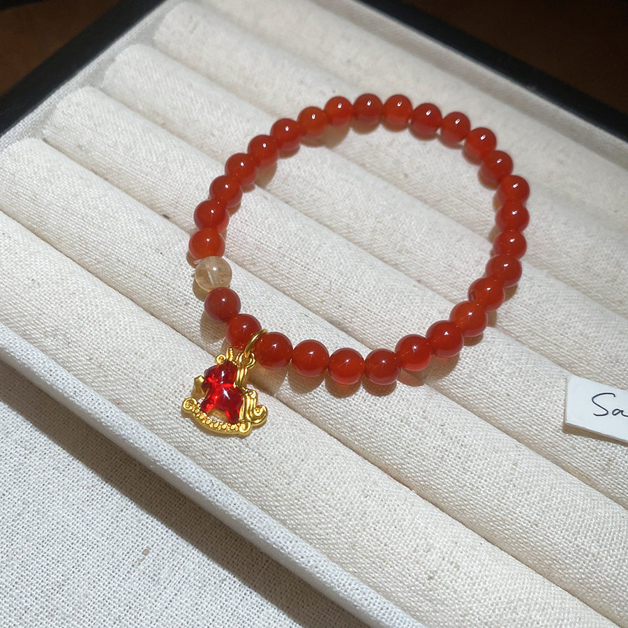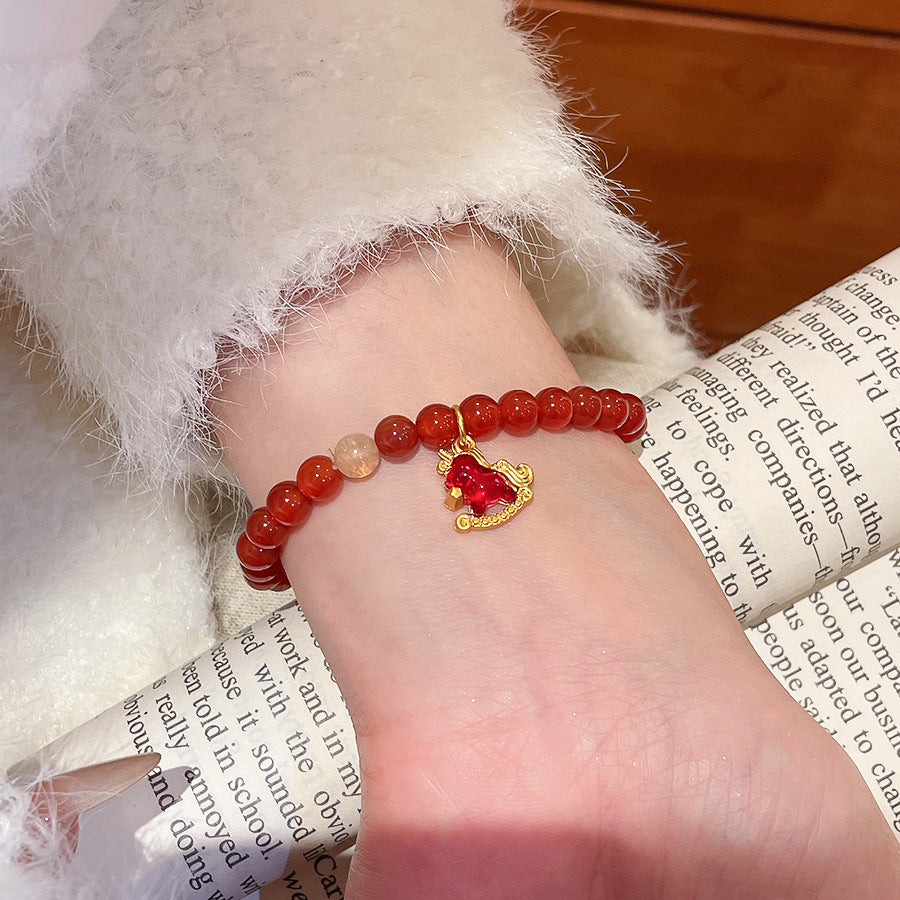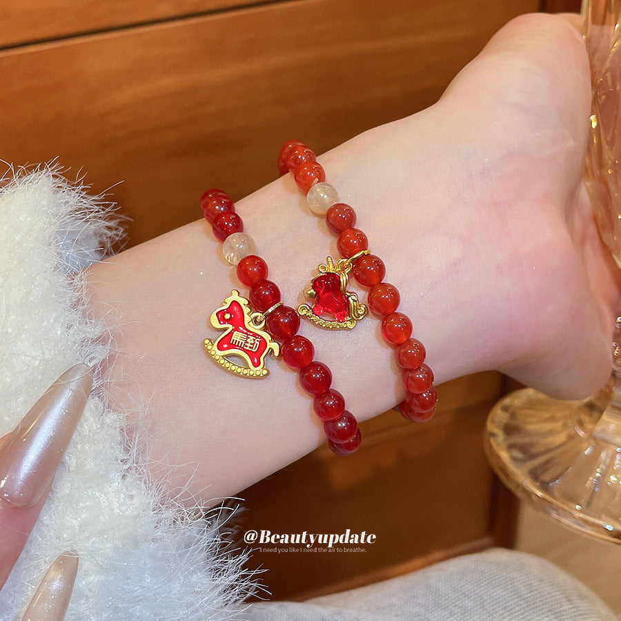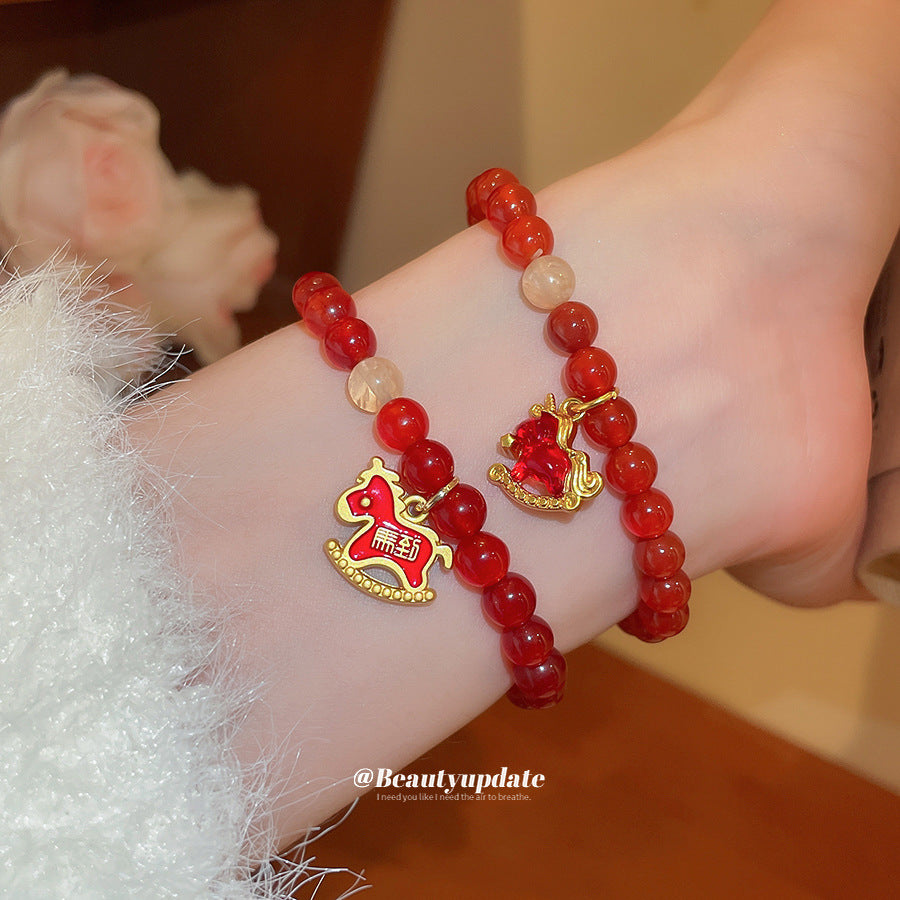 A廠【HB4808】新中式瑪瑙串珠小馬本命年手鍊文藝氣質手串手環小眾設計感手飾女 25.10-5