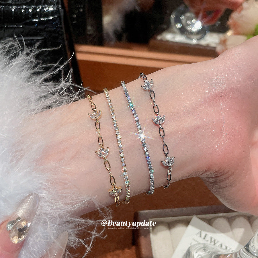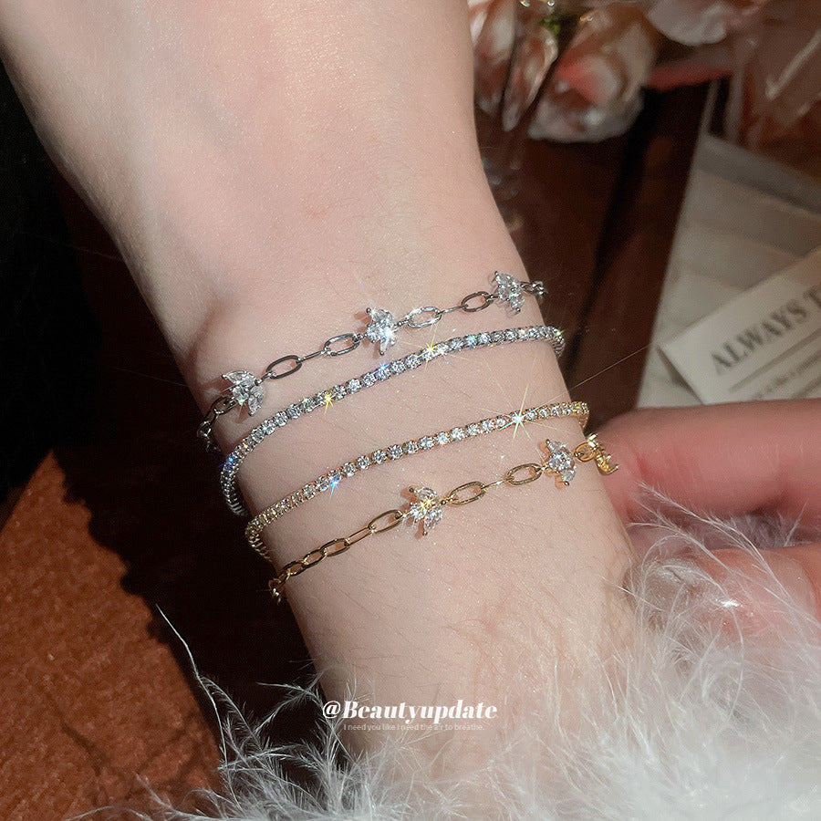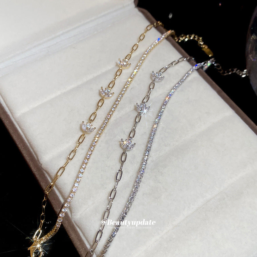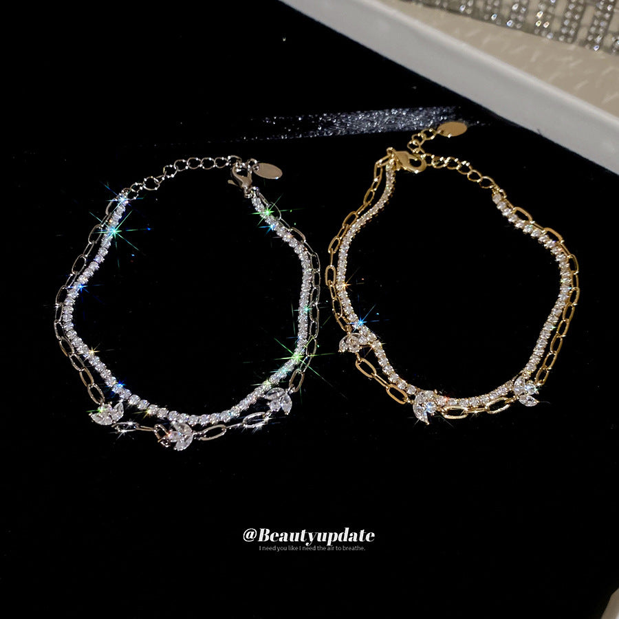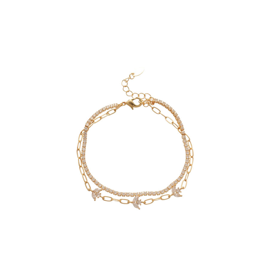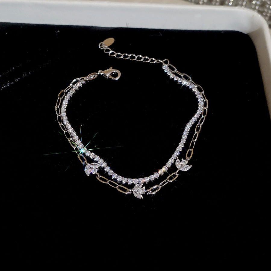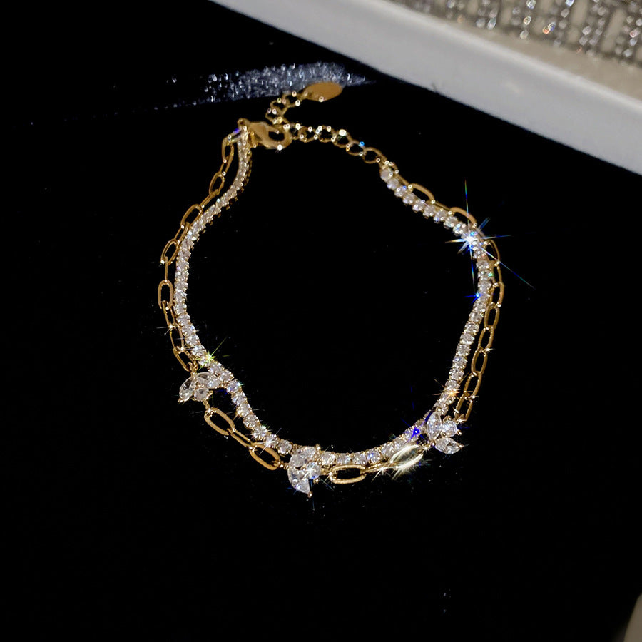 A廠【HB4880】18k真金電鍍雙層鋯石花朵手鍊韓系ins優雅手環輕奢高級感氣質手飾 25.11-1