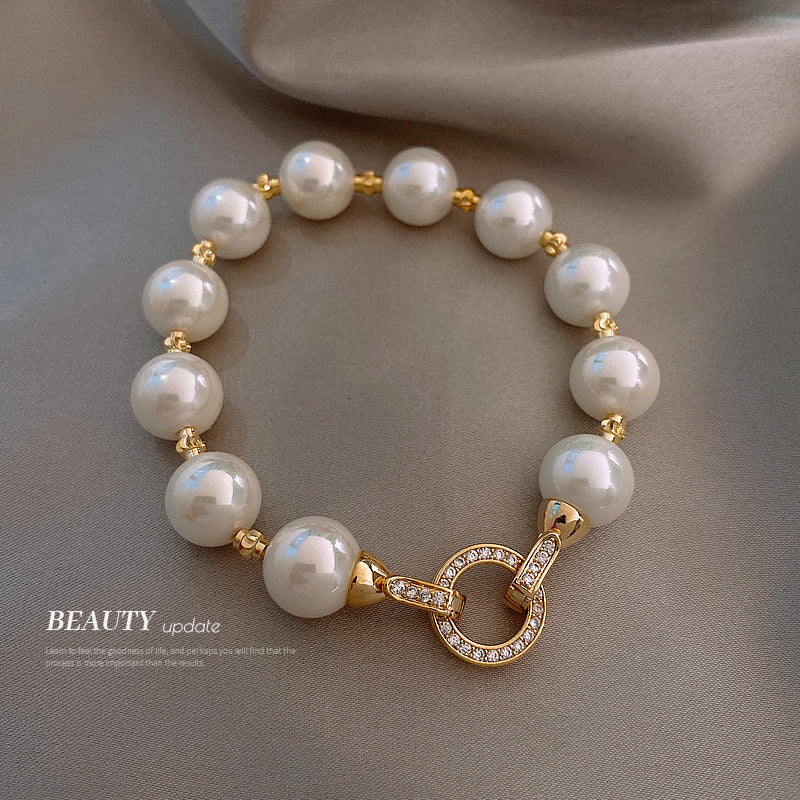 A廠【HB702】真金電鍍鋯石珍珠手鍊小眾輕奢設計感手環復古百搭宮廷風手飾 24.08-3