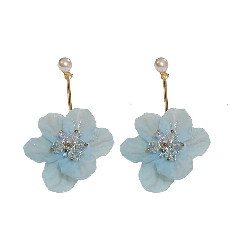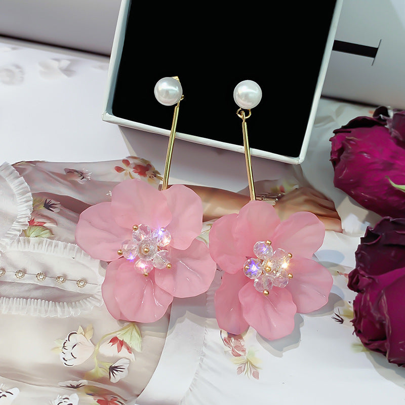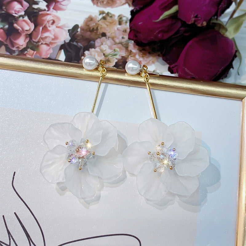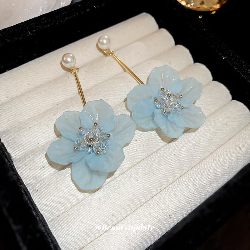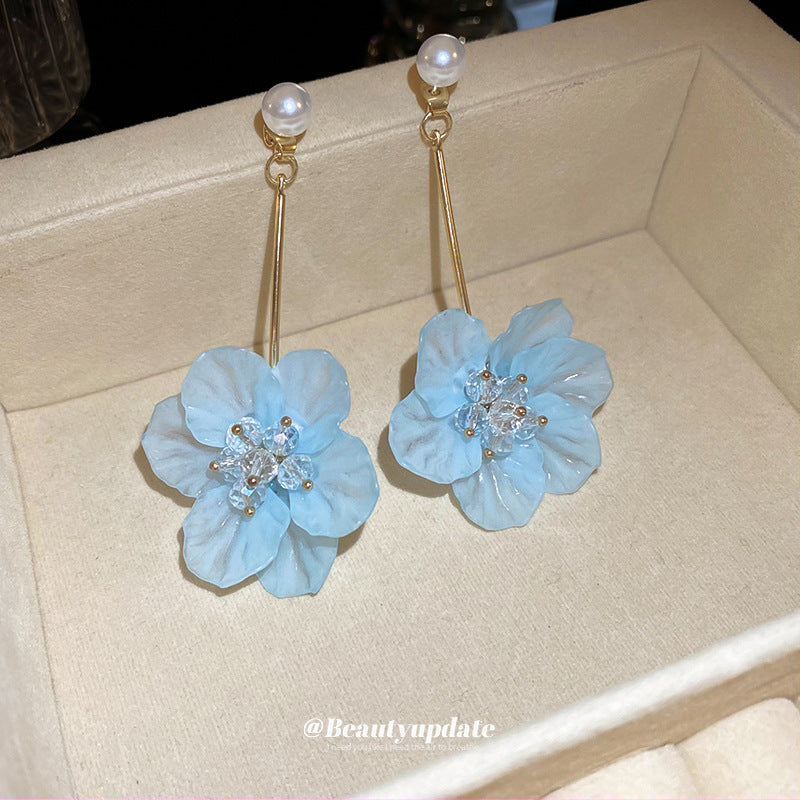 A廠【HE1273】925銀針夏季小清新花朵流蘇水晶耳環小眾文藝耳環超仙甜美百搭耳環女 24.07-2
