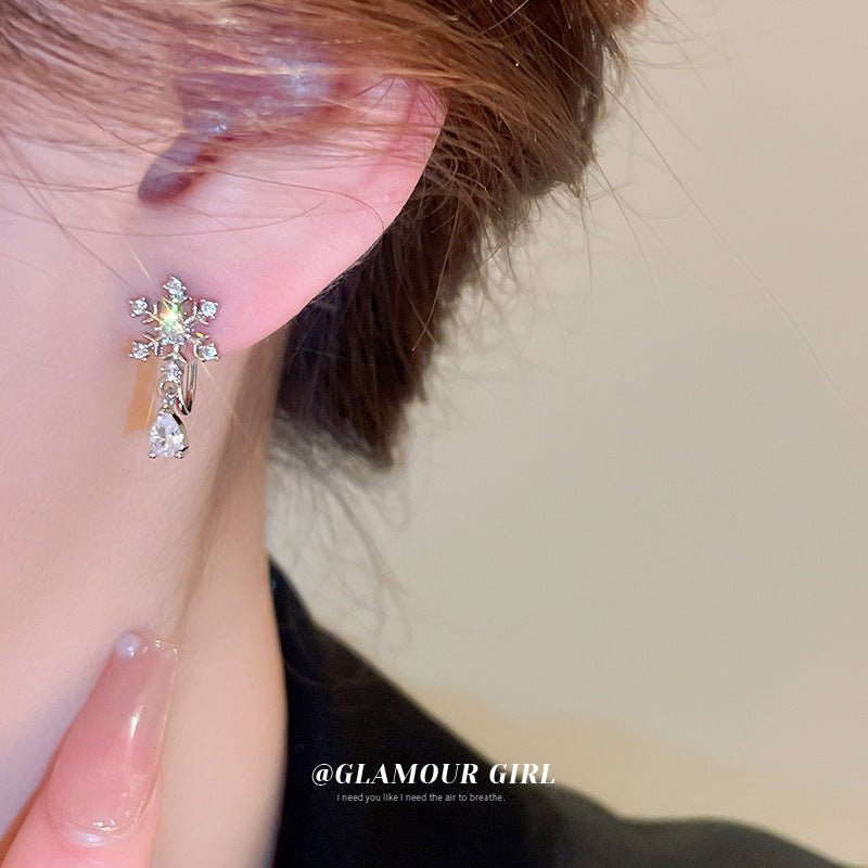 A廠【HE13669】聖誕節鋯石雪花耳環無洞高級感百搭耳環冷淡風小眾時尚輕奢耳飾女 24.12-2