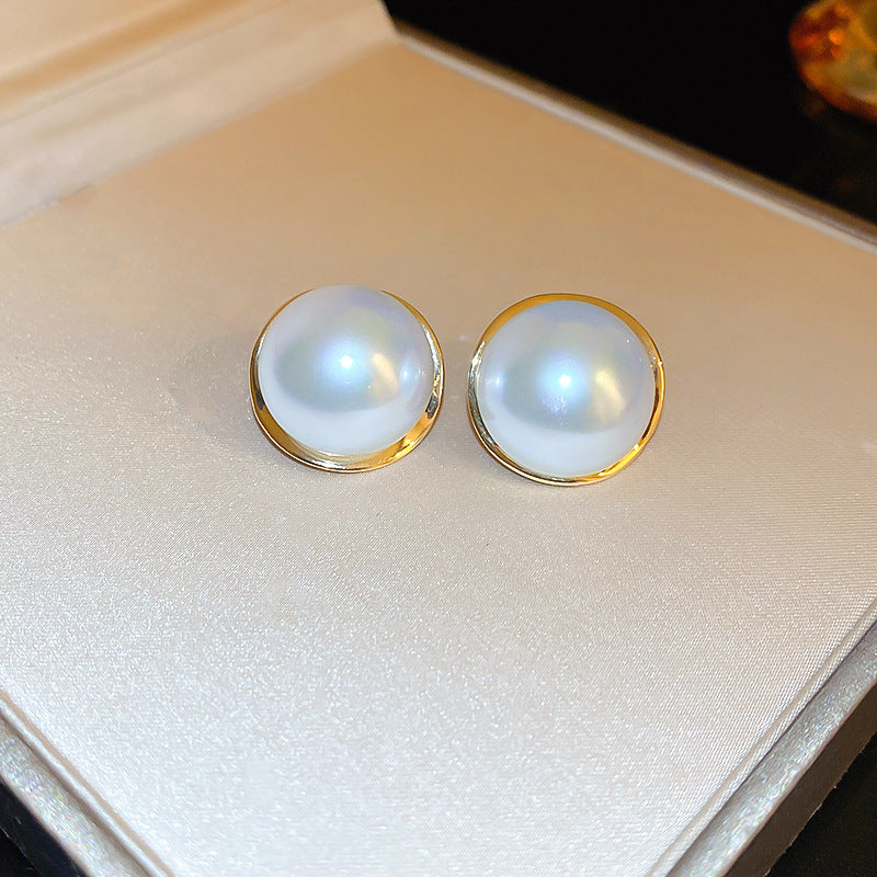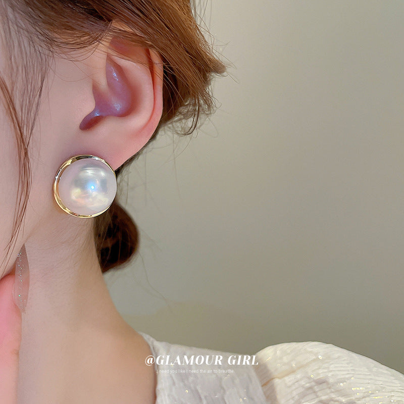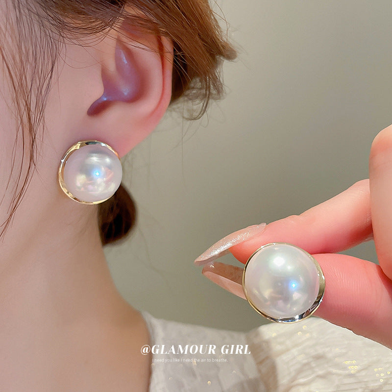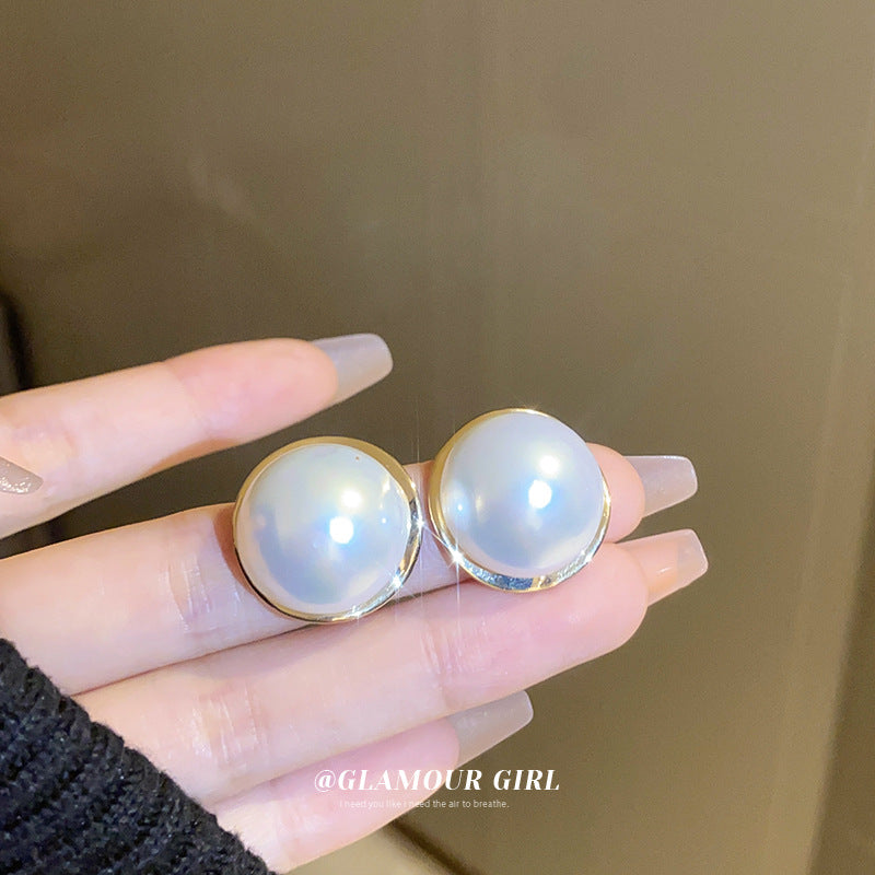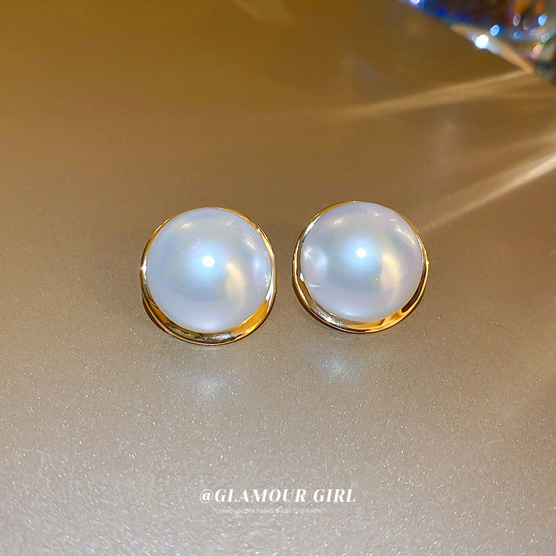 A廠【HE15287】925銀針圓形珍珠耳環法式復古簡約耳環輕奢時尚百搭高級感耳飾 24.07-2