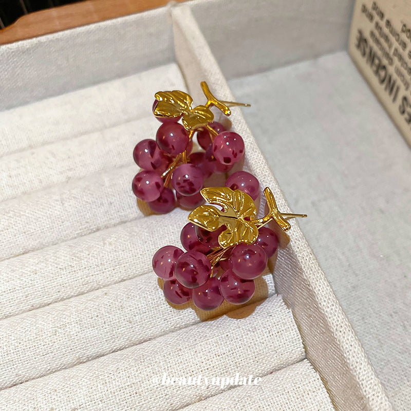 A廠【HE19071】925銀針樹脂葡萄耳環田園風個性時尚設計感耳環氣質百搭新款耳飾 24.03-3
