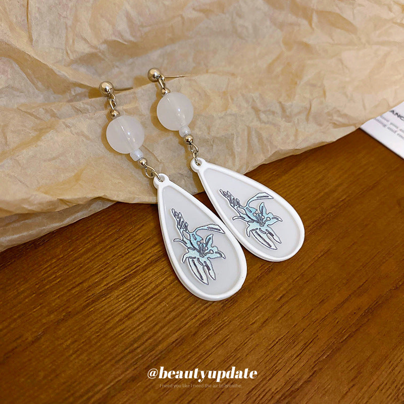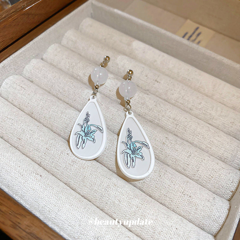 A廠【HE19541】925銀針全新中式樹脂水滴花朵耳環國潮氣質百搭長版耳環復古旗袍耳環女 24.04-2