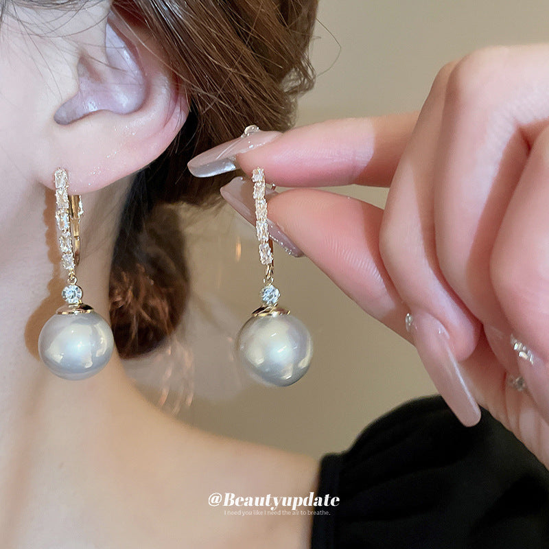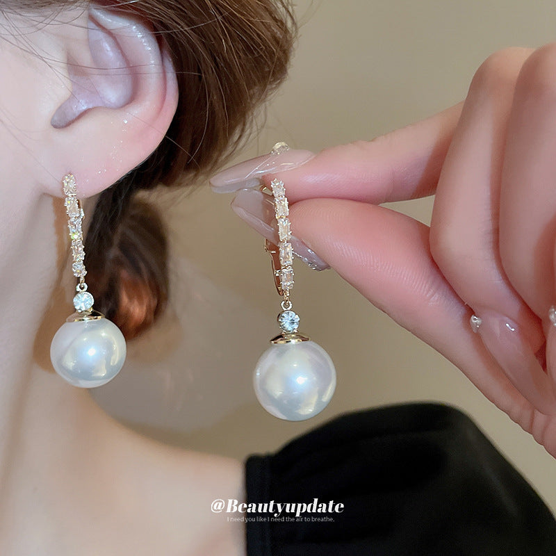 A廠【HE19647】925銀針鋯石圓形珍珠耳環法式輕奢風優雅耳環通勤時尚百搭耳環 24.04-3