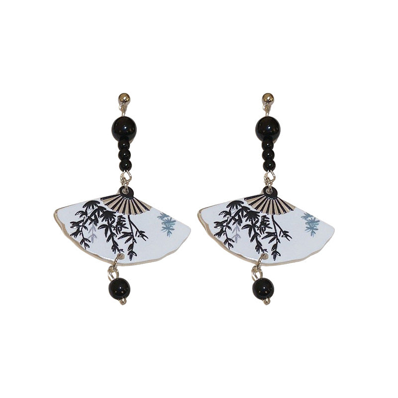 A廠【HE19716】925銀針樹脂圓形扇子長耳環新中式國風百搭耳墜小眾時尚新款耳環女 24.04-3