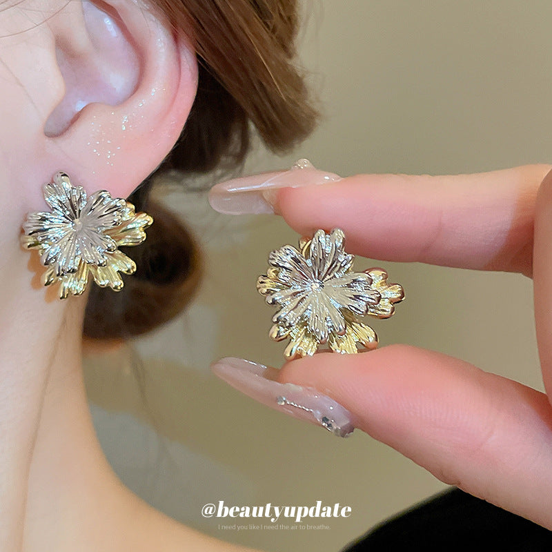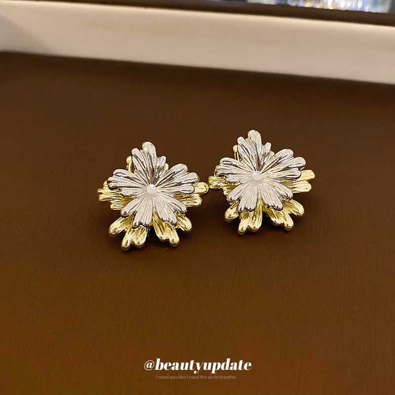 A廠【HE19734】925銀針簡約花朵拼接耳環歐美時尚金屬風耳環個性冷淡風新耳環 24.04-3