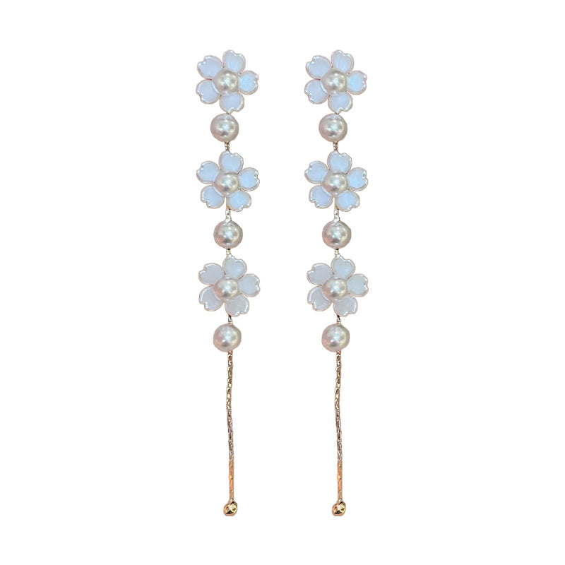 A廠【HE20894】925銀針法式花朵珍珠流蘇耳環超仙時尚輕奢氣質耳環優雅高級感耳飾女 24.07-1