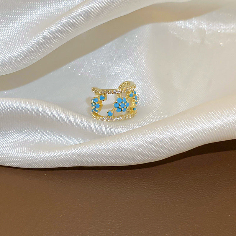 A廠【HE20978】真金電鍍宮廷風鋯石花朵耳夾輕奢時尚無耳洞耳骨夾小眾高級感耳飾 24.06-4