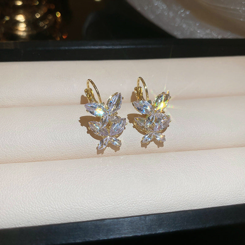A廠【HE21041】ins風爆閃鋯石蝴蝶耳扣韓系時尚高級感耳環跨國個性小眾耳飾 24.06-4