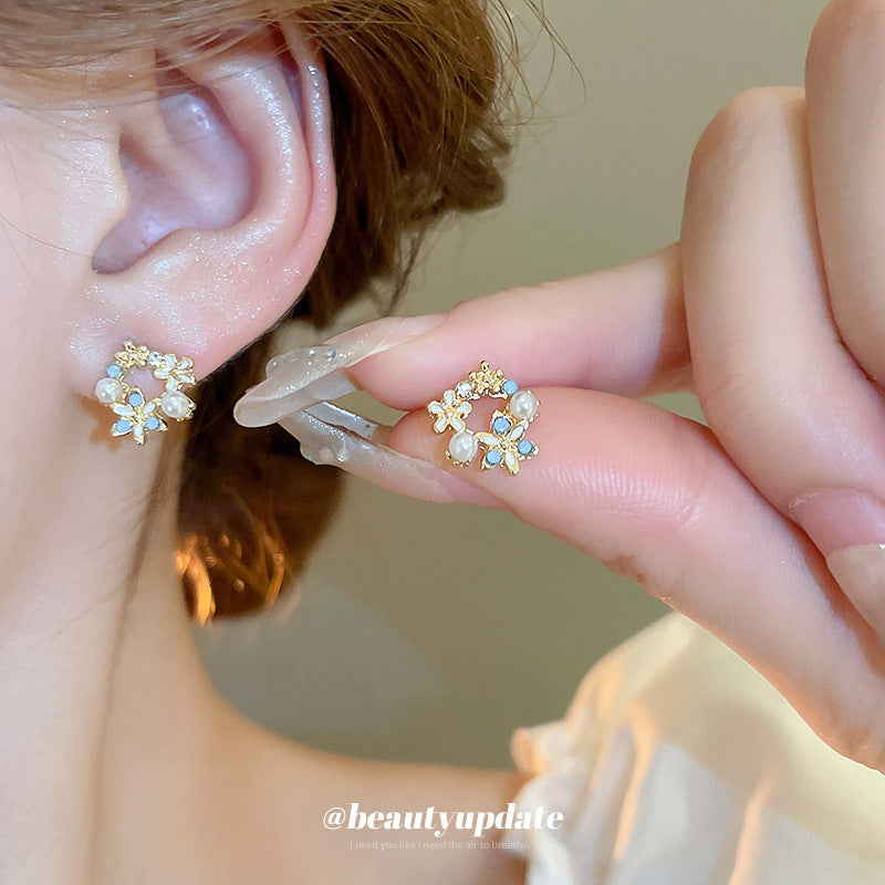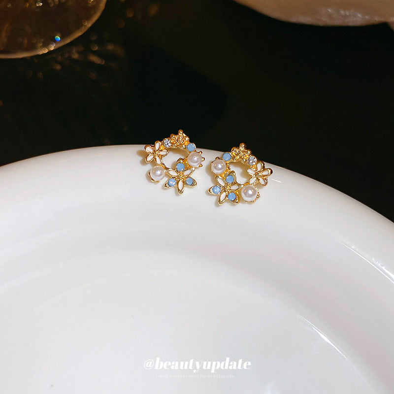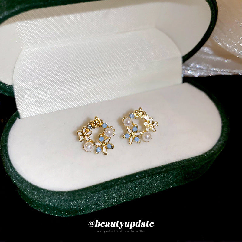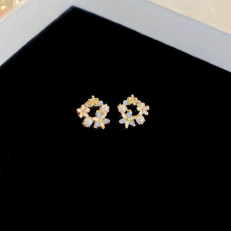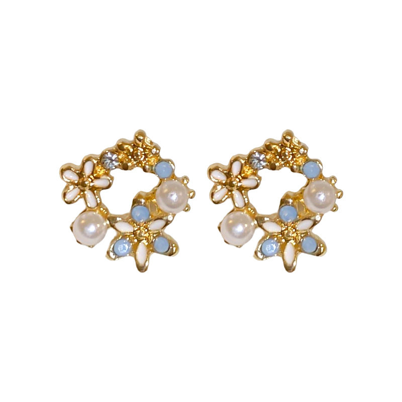 A廠【HE21290】925銀針法式輕奢高級感花珍珠耳環女輕奢小眾耳環時尚百搭耳環 24.07-2
