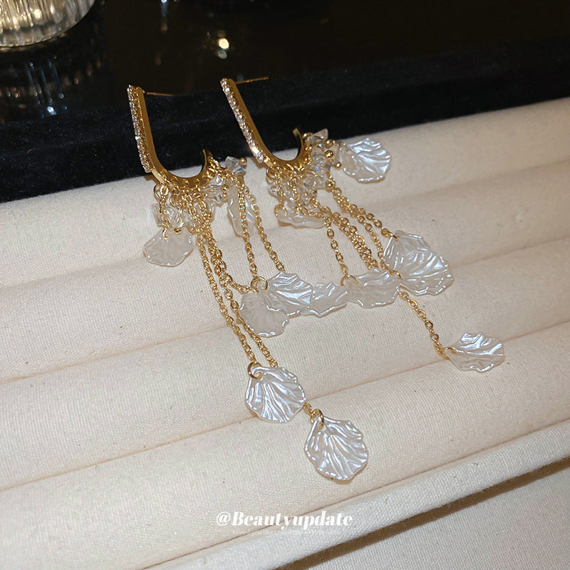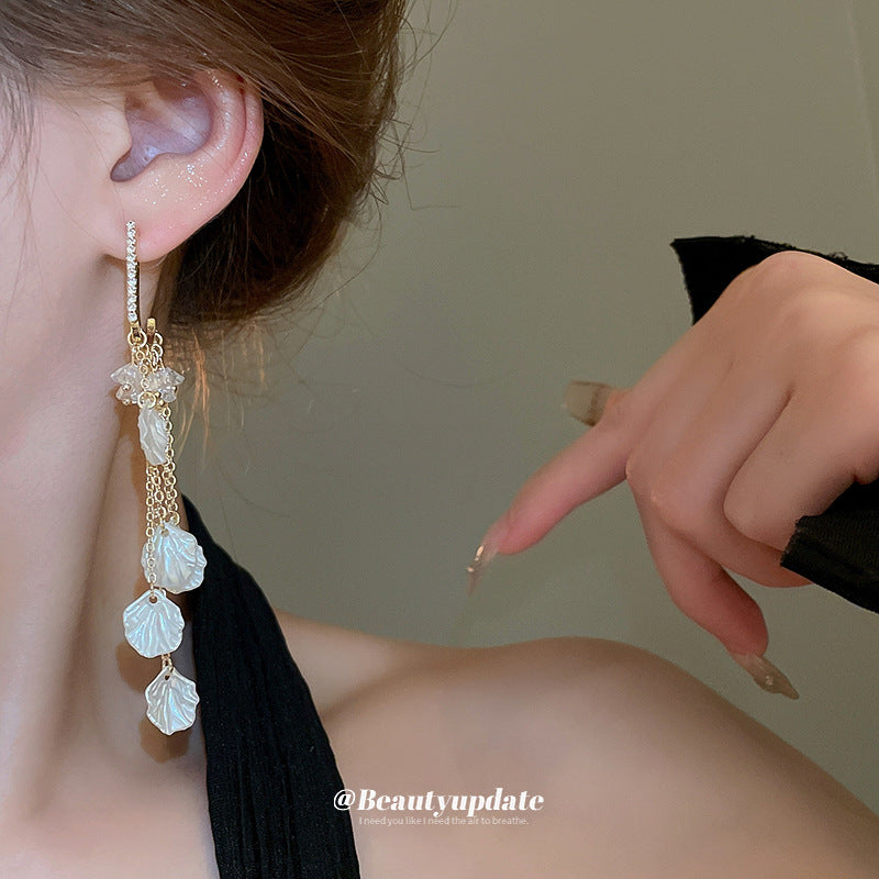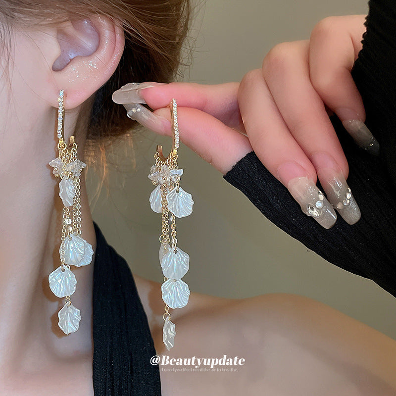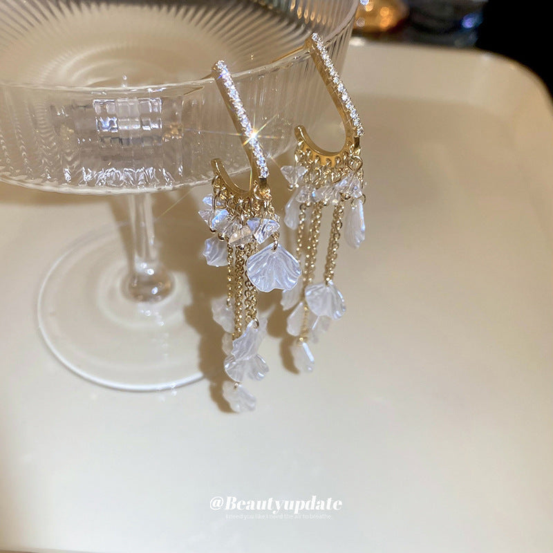 A廠【HE21416】925銀針鑲鑽流蘇水晶耳環夏季新款設計感耳環通勤百搭度假風長款耳飾 24.07-2