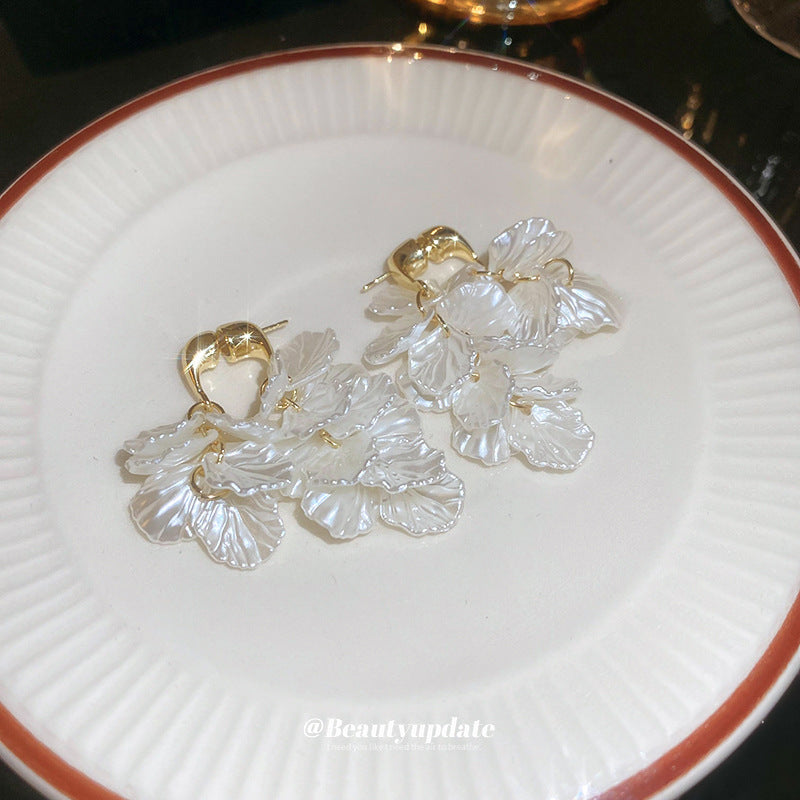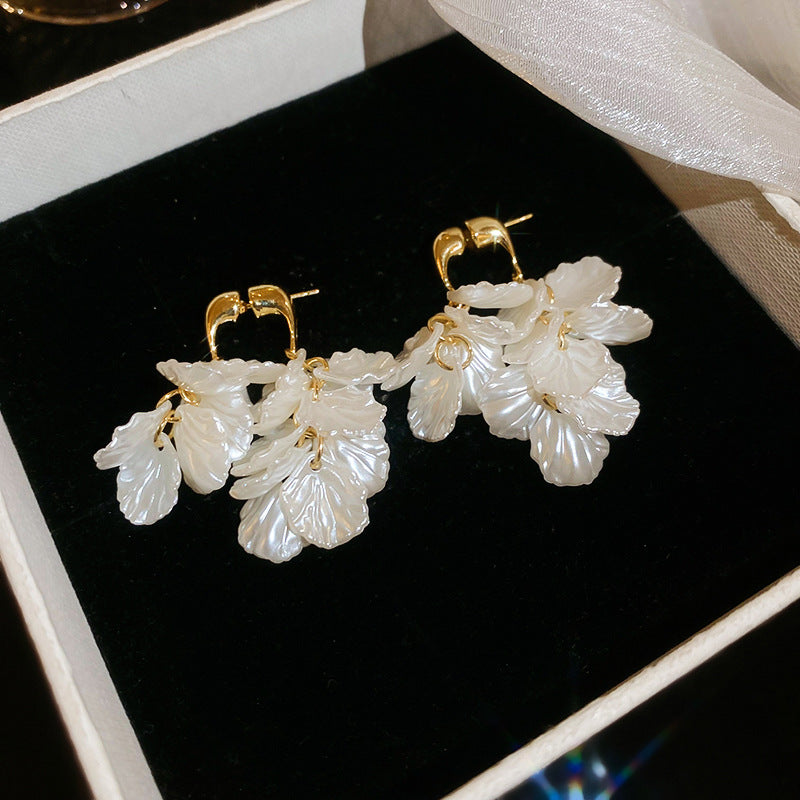 A廠【HE21577】925銀針超仙多層貝殼花瓣流蘇耳環法式高級感氣質耳環輕奢百搭耳飾女 24.07-4