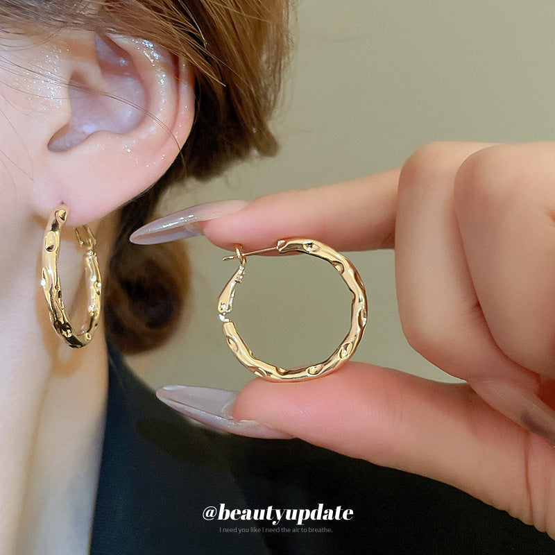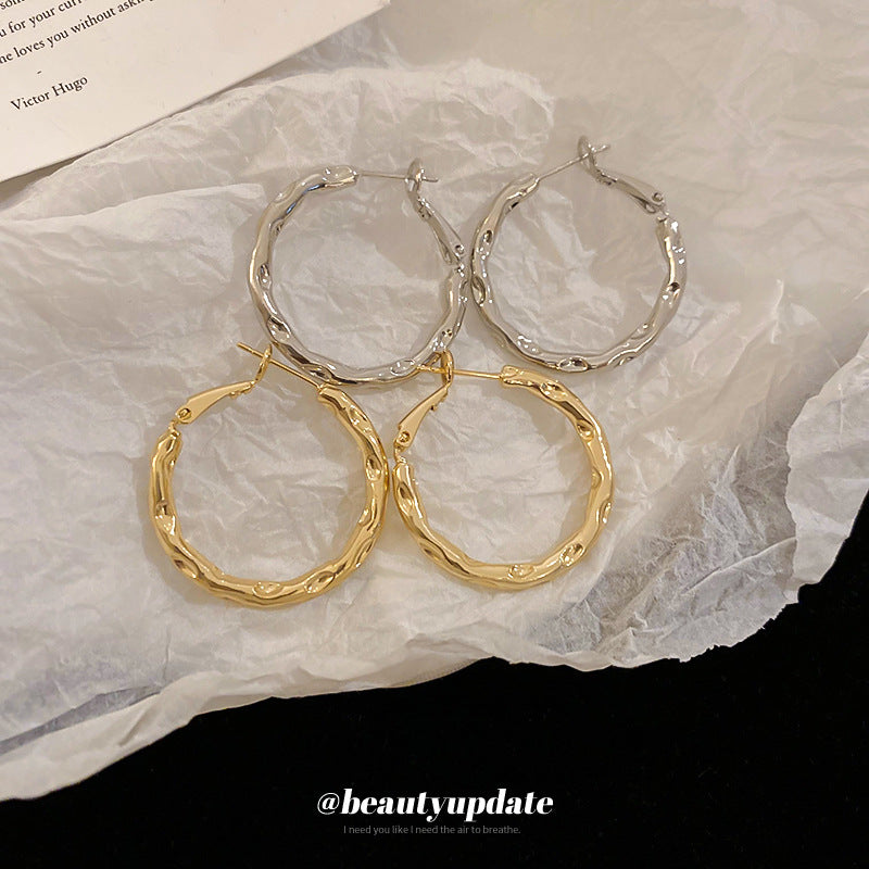 A廠【HE21609】925銀針冷淡風不規則氣質幾何耳環跨國百搭素圈耳圈時尚高級感耳飾女 24.07-4