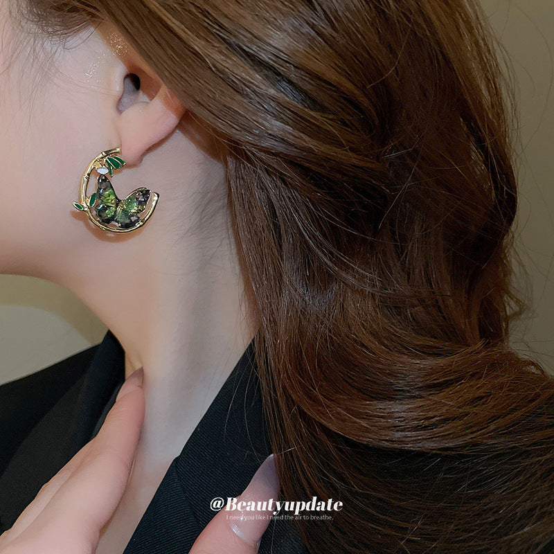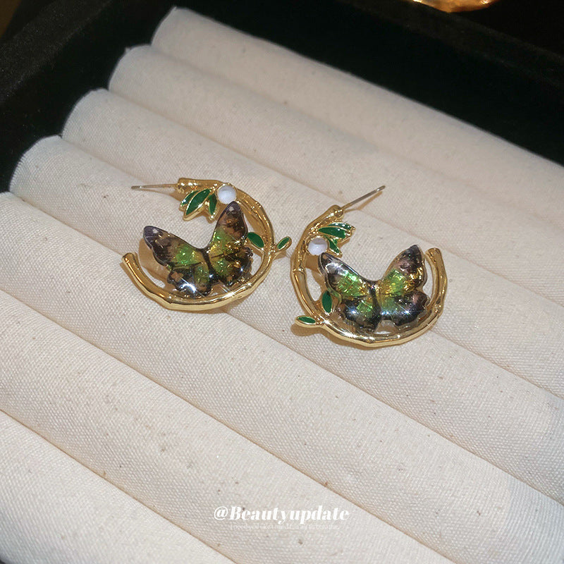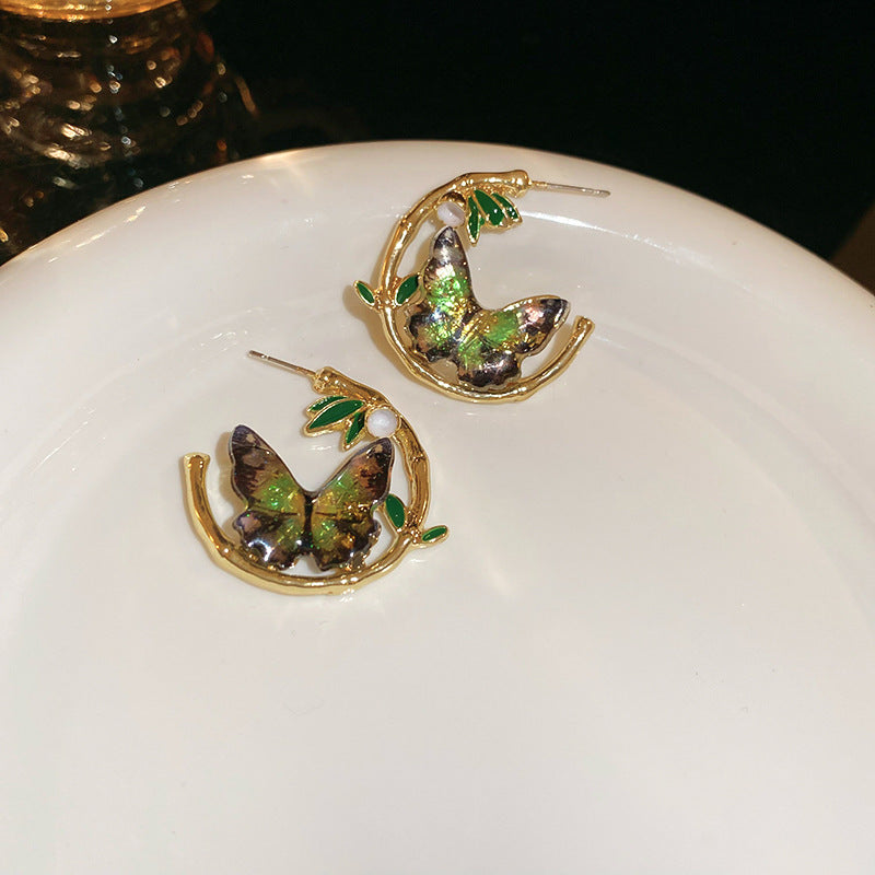 A廠【HE21677】925銀針復古森系竹葉蝴蝶幾何耳環新中式氣質設計感耳環輕奢個性耳環 24.07-4