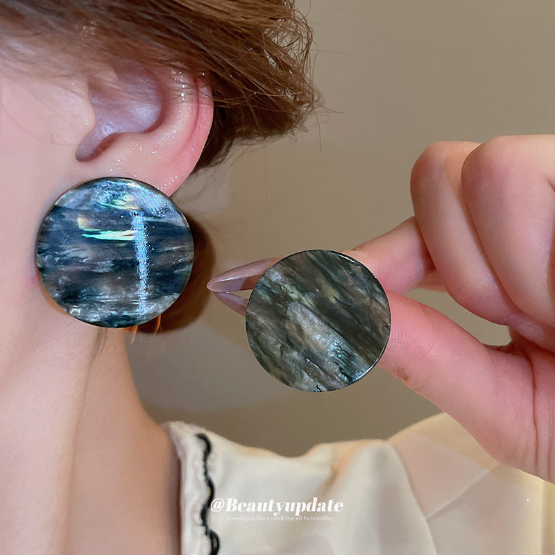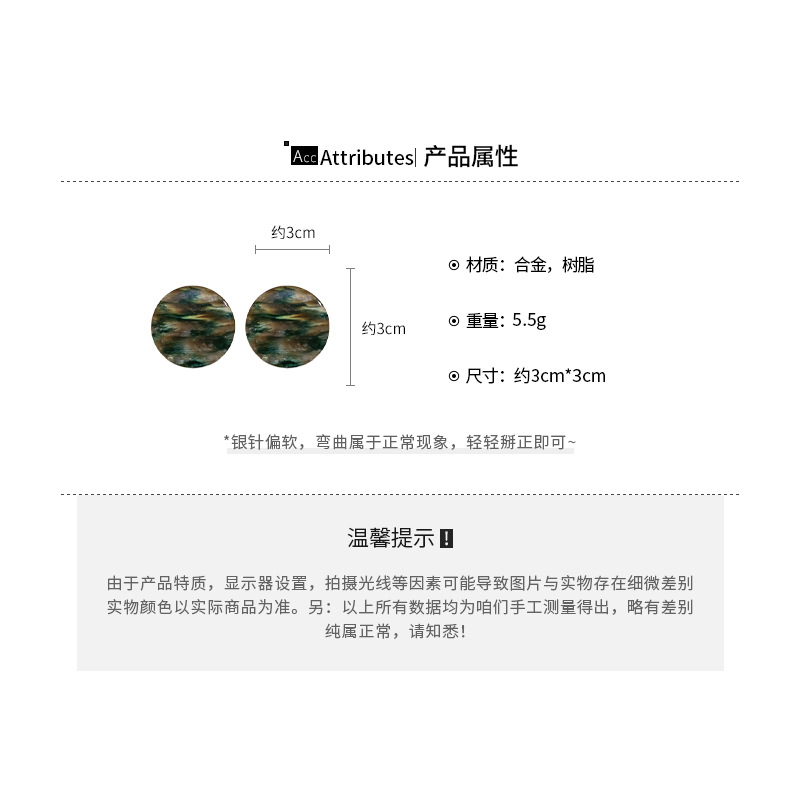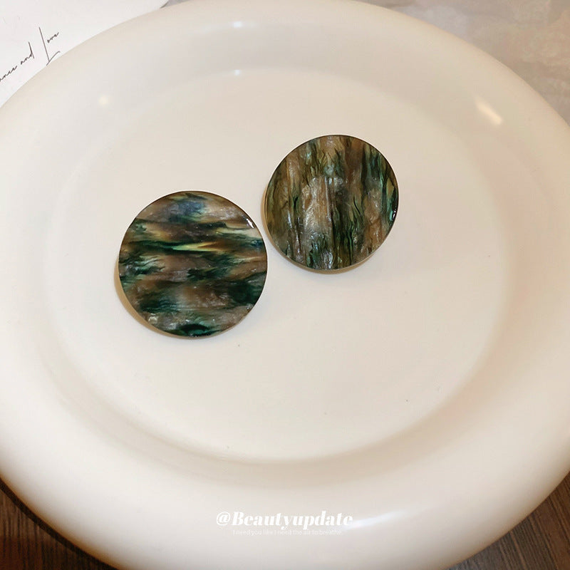 A廠【HE21769】925銀針復古水墨紋理圓片耳環2024全新日常百搭耳環小眾時尚耳飾 24.07-5