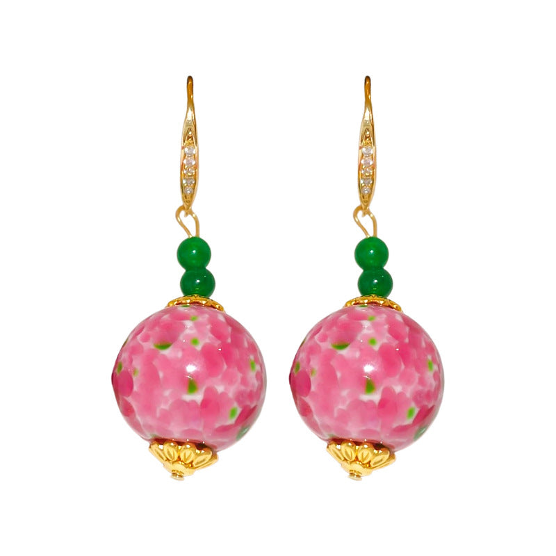 A廠【HE21822】全新中式復古粉綠陶瓷耳環國風甜美清新耳環國潮少女高級感耳飾 24.08-2