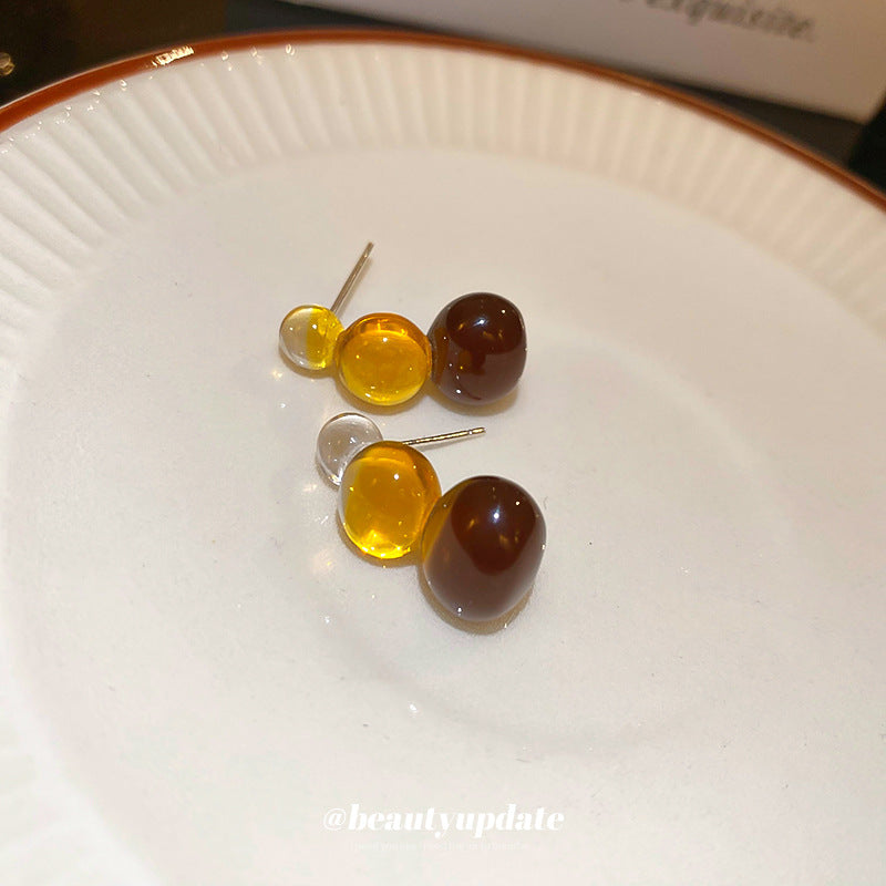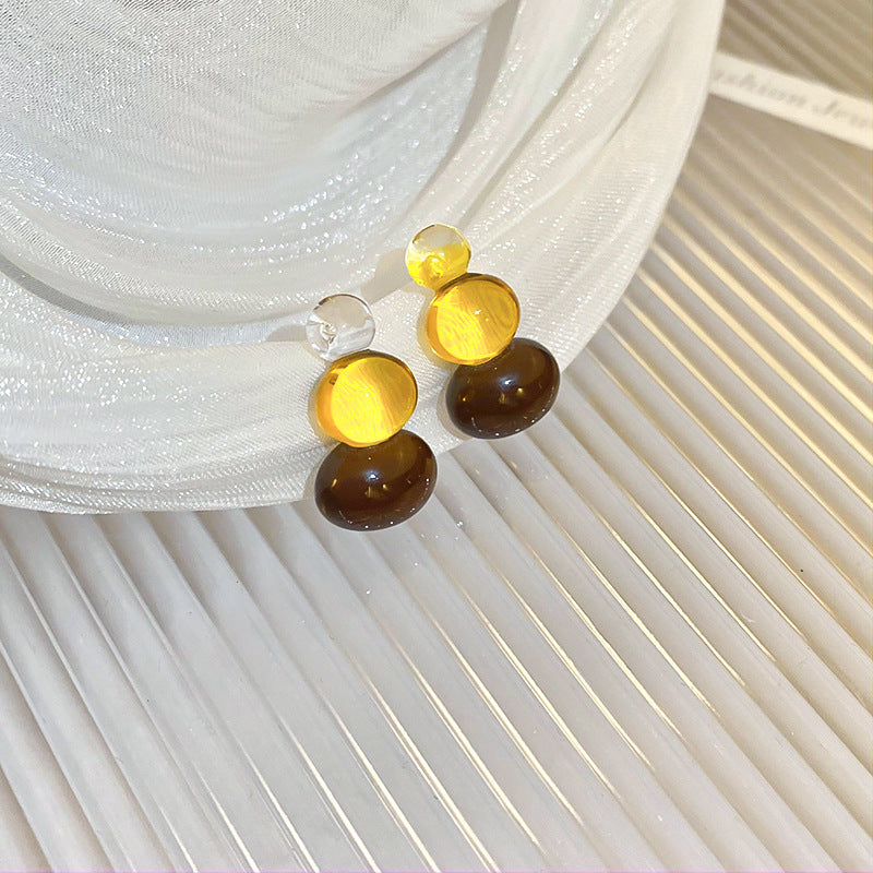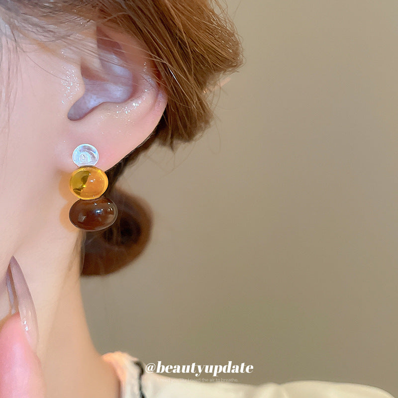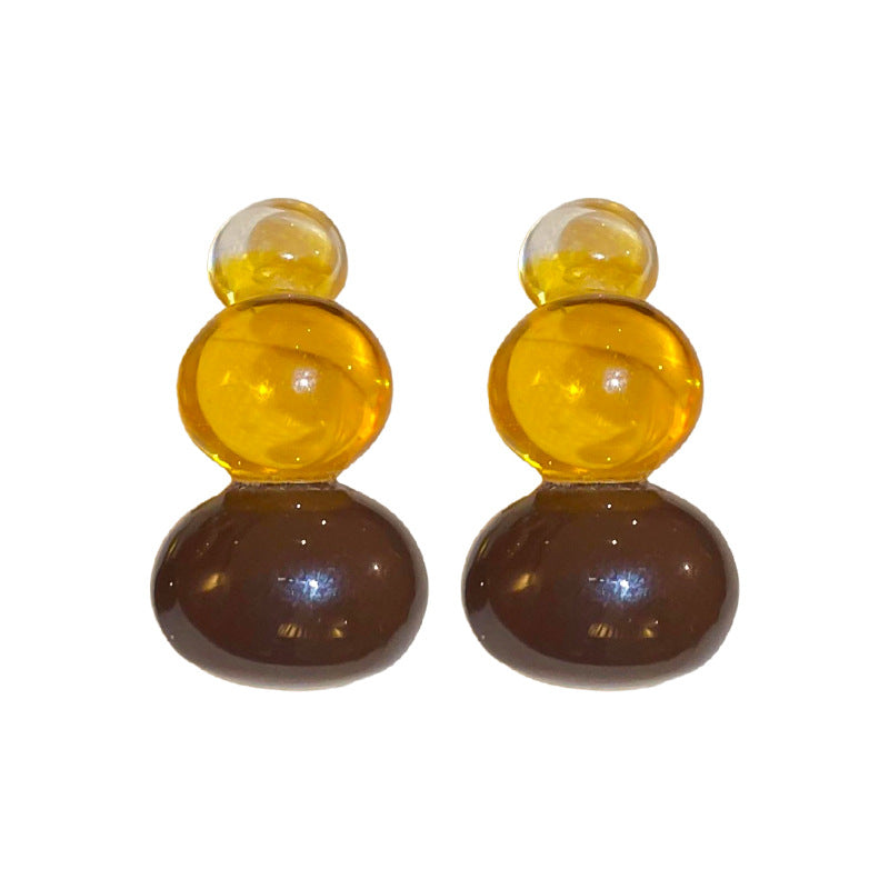 A廠【HE21892】925銀針冰透焦糖色葫蘆耳環簡約時尚氣質潮流耳環高級感百搭耳飾 24.08-3