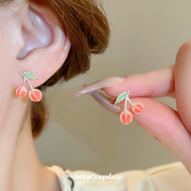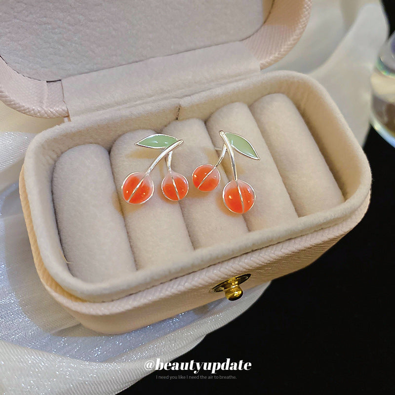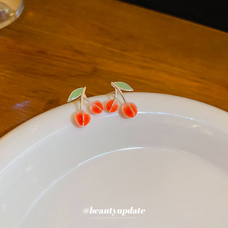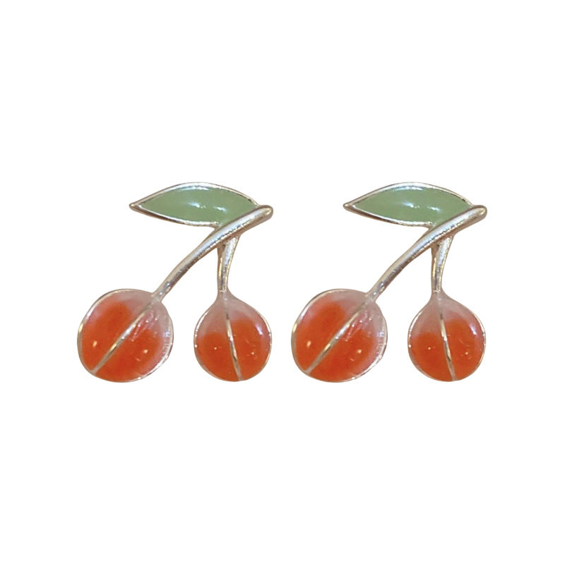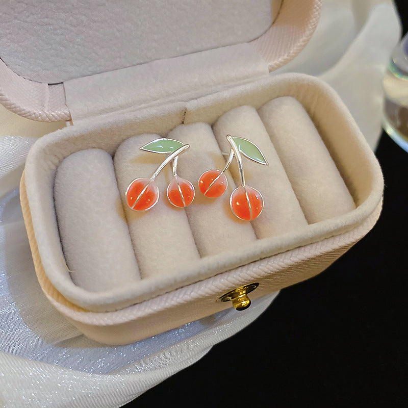 A廠【HE21968】925銀針小清新滴油紅綠櫻桃耳環氛圍感耳環ins風可愛百搭少女心耳飾 24.08-3