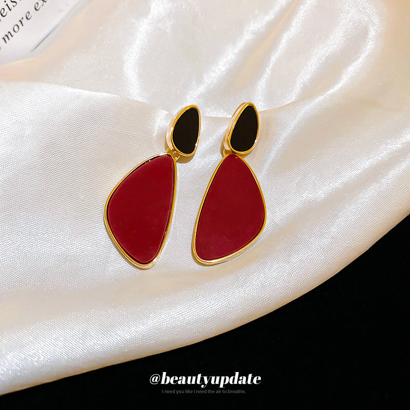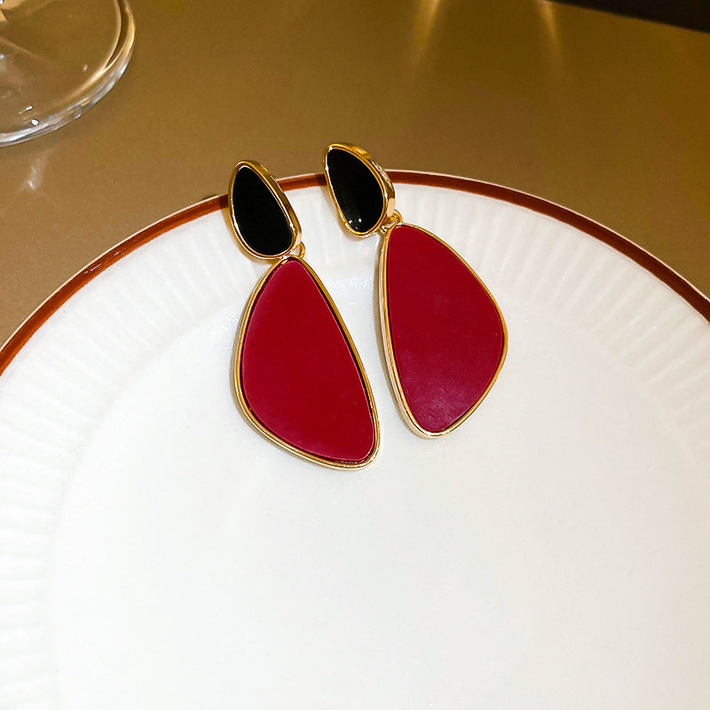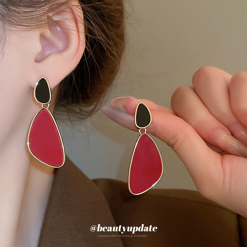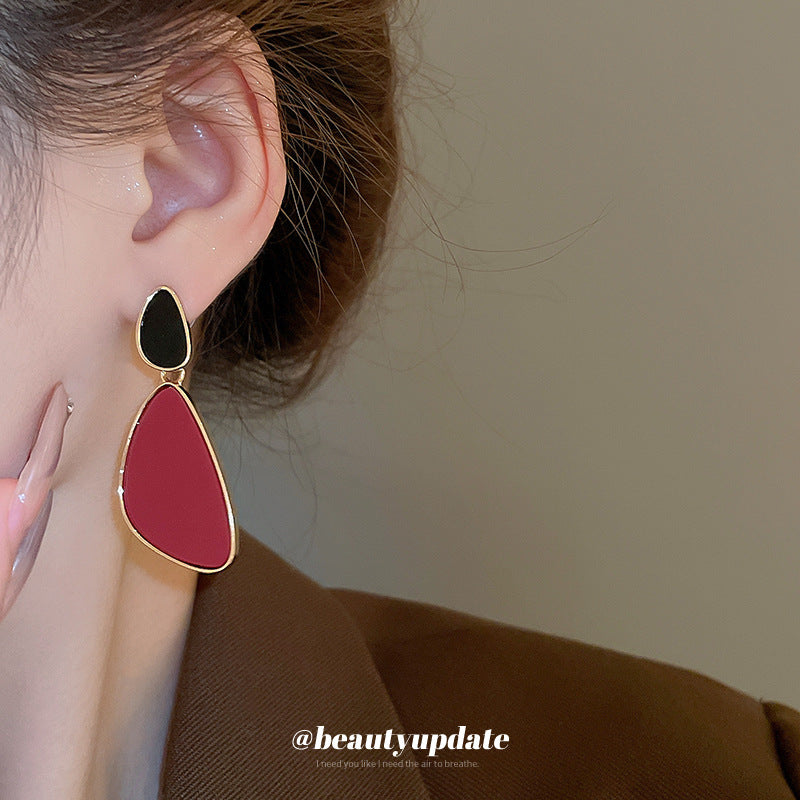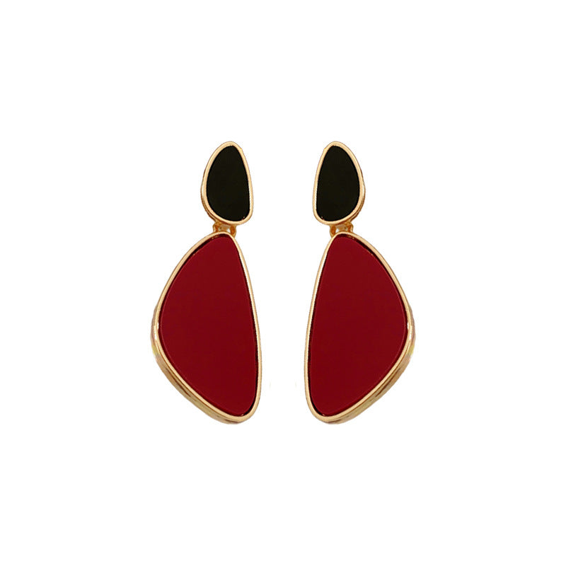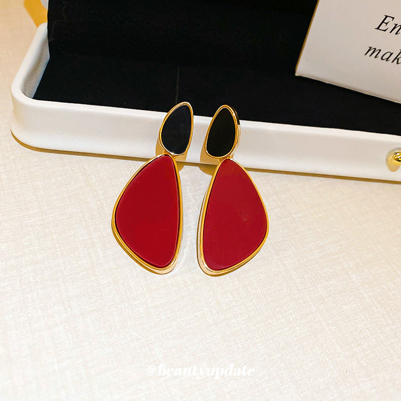 A廠【HE22365】925銀針紅色三角形幾何耳環港風小眾復古設計耳環高級感時尚新款耳環 24.09-2