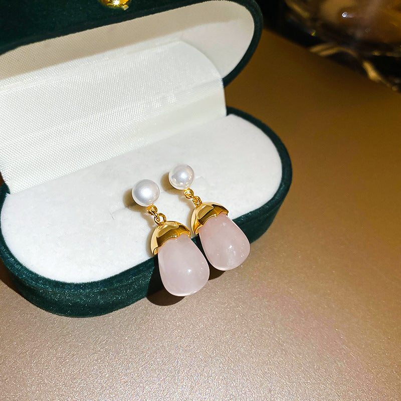 A廠【HE22372】真金電鍍925銀針國風仿玉吊墜耳環高級感耳墜人造珍珠款優雅氣質耳環 24.09-2