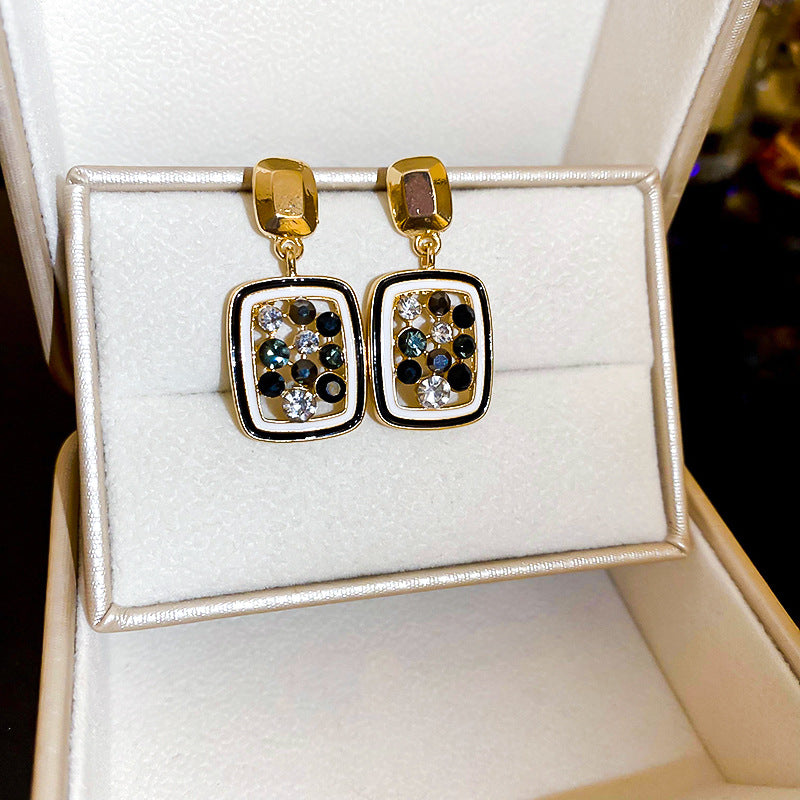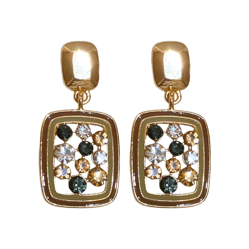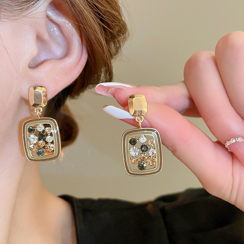 A廠【HE22396】925銀針跨國復古方形鑲鑽吊墜耳環耳環輕奢氣質耳環小眾高級感耳飾女 24.09-2