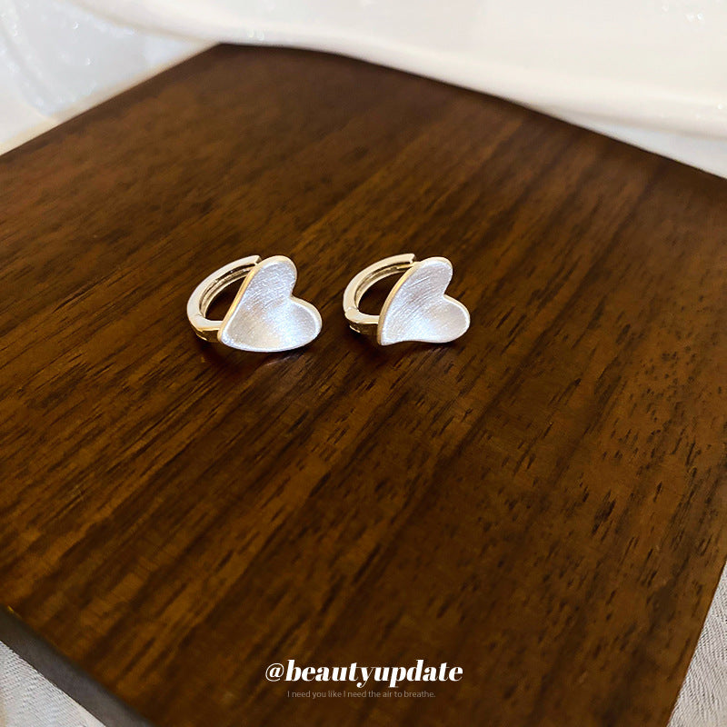 A廠【HE22416】甜酷風愛心拉絲金屬耳扣韓小眾時尚耳環ins風潮流百搭高級感耳飾 24.09-2