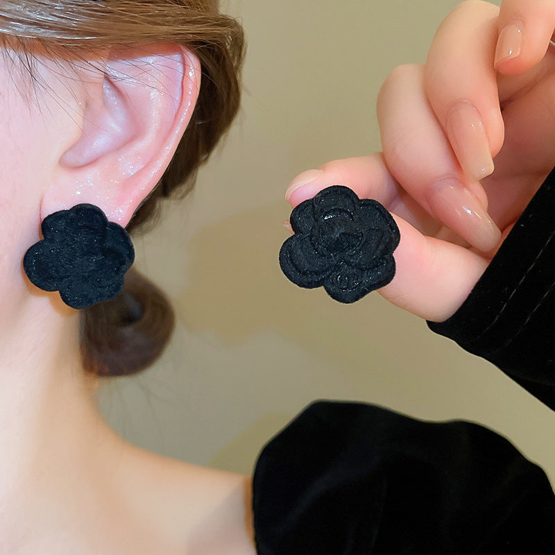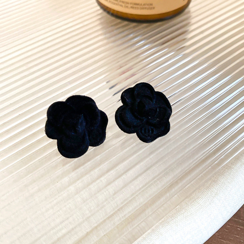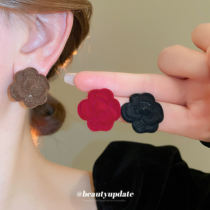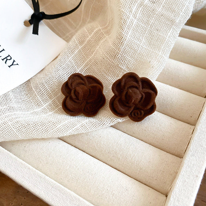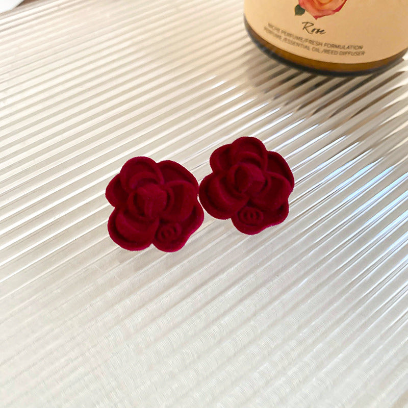 A廠【HE22469】925銀針港風溫柔植絨玫瑰花朵耳環網紅同款耳環氛圍感氣質唯美耳環女 24.09-3