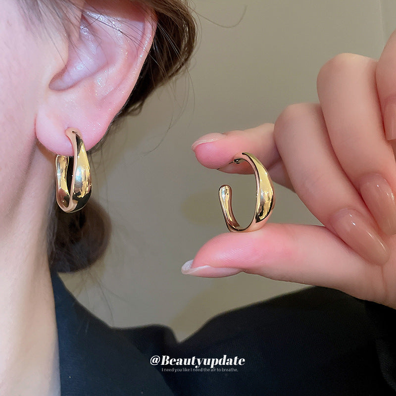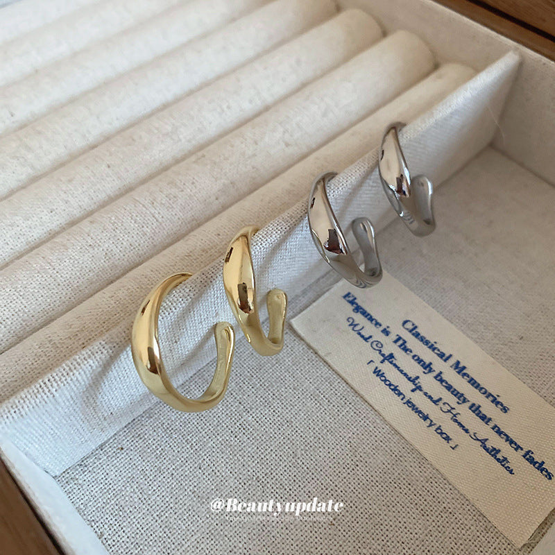 A廠【HE22473】真金電鍍925銀針C型不規則金屬風耳環簡約個性耳圈輕奢高級感耳飾女 24.09-3