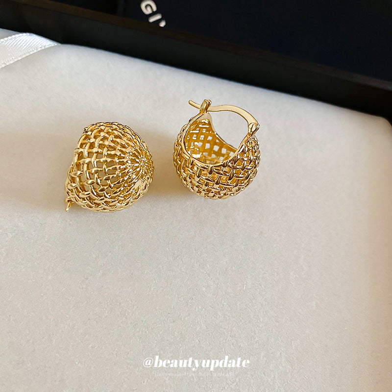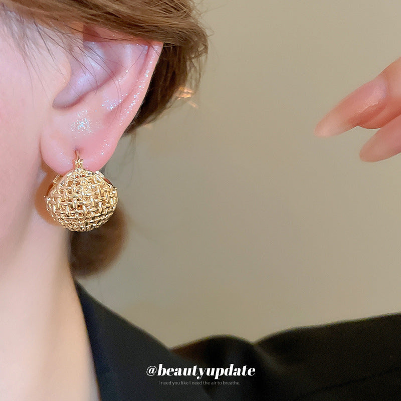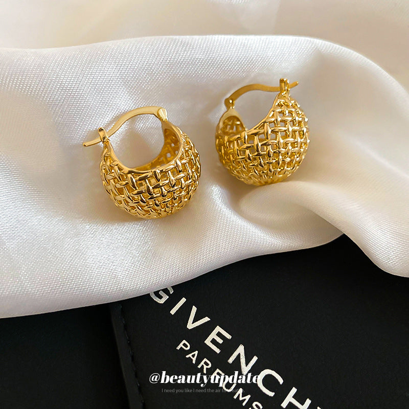 A廠【HE22526】時尚設計感U型編織籃子耳環小眾設計感耳環個性輕奢冷淡風耳環女 24.09-4