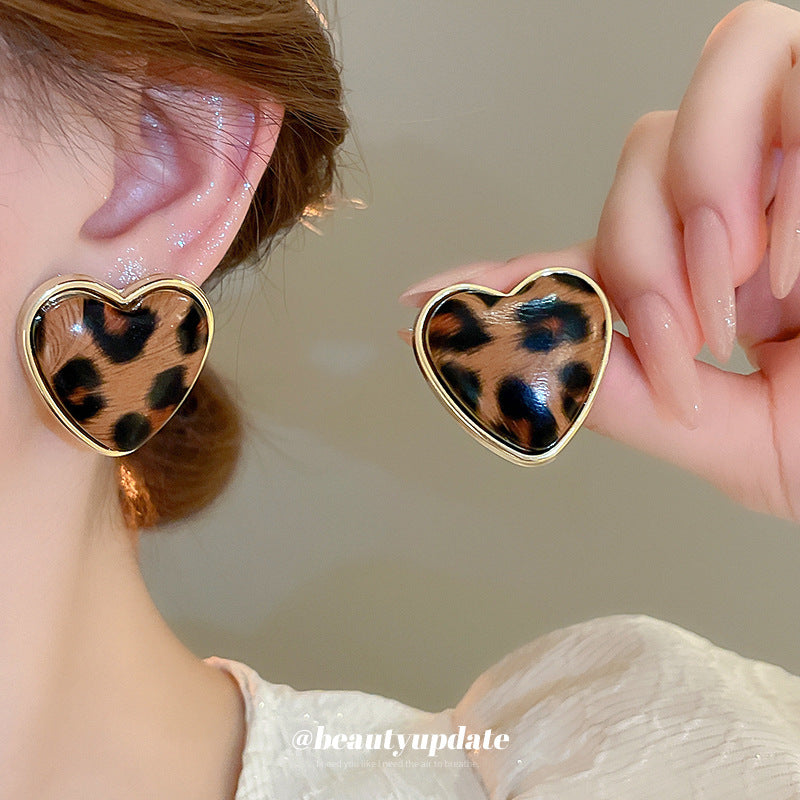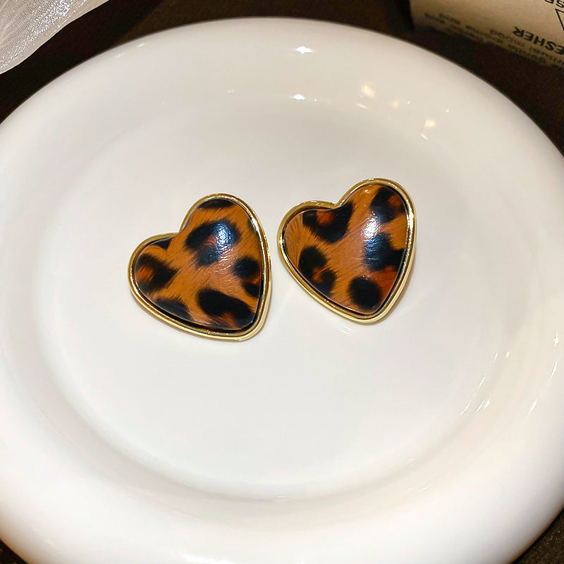 A廠【HE22534】925銀針美拉德豹紋愛心耳環秋冬百搭高級感耳環復古港風小眾耳飾 24.09-4