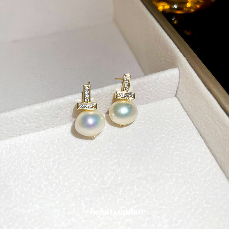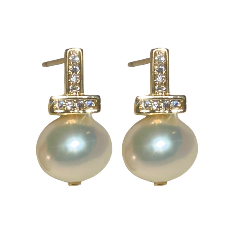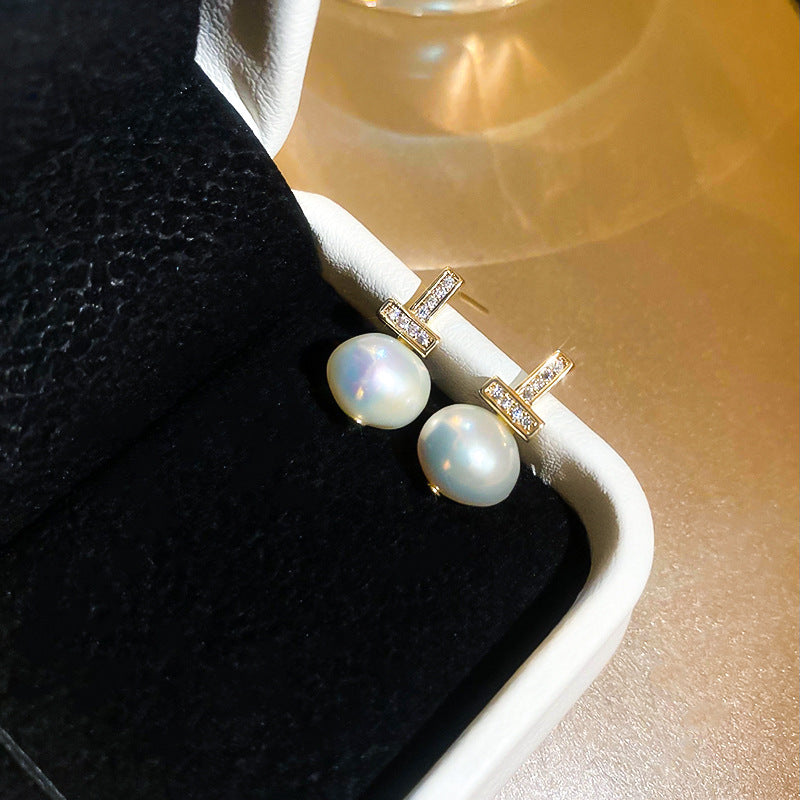 A廠【HE22537】真金電鍍925銀針鋯石淡水珍珠字母耳環輕奢高級感耳環復古氣質耳飾女 24.09-4