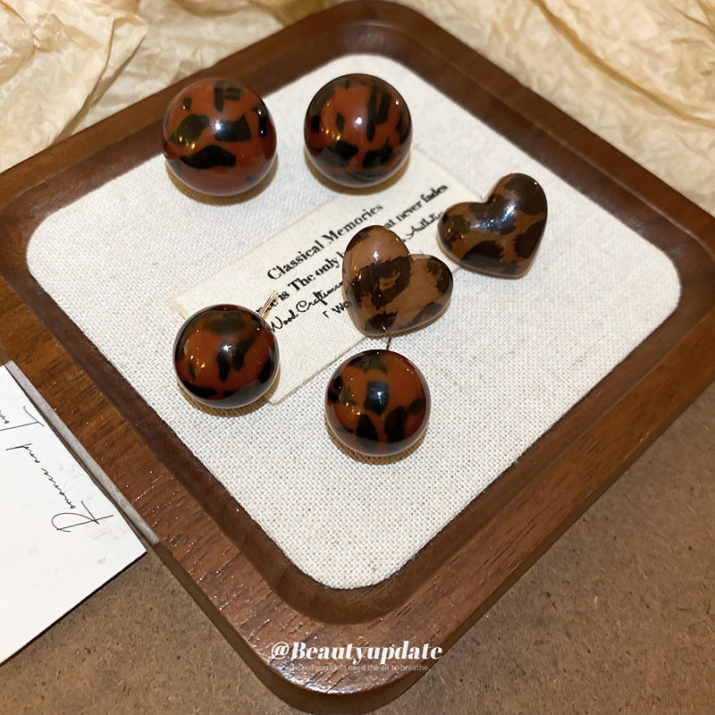 A廠【HE22552】925銀針美拉德港風簡約樹脂愛心耳環網紅色新款耳環復古個性高級感耳飾 24.09-4
