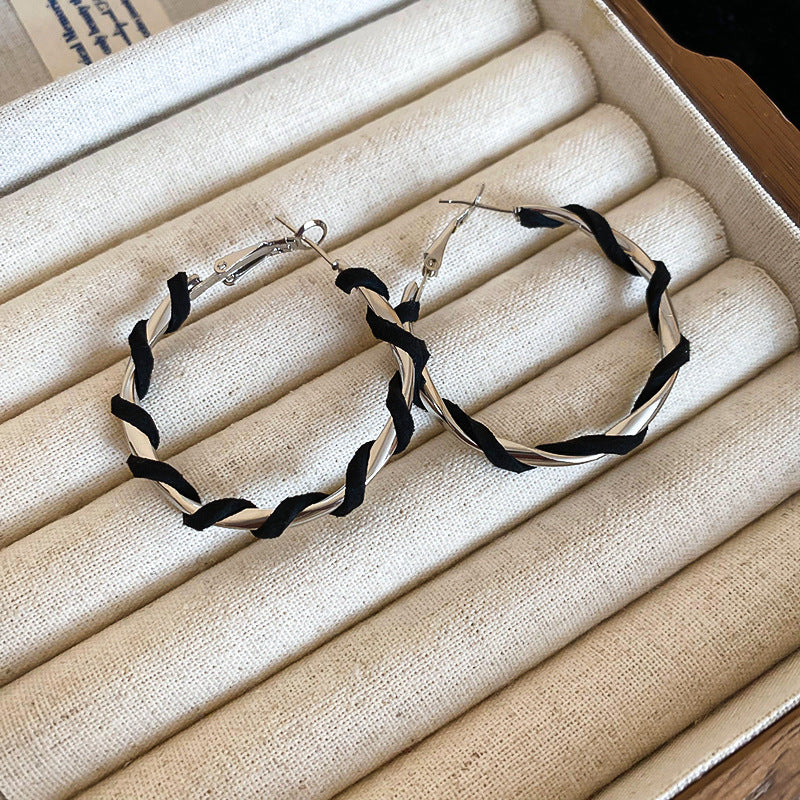 A廠【HE22579】簡約人造皮革纏繞扭曲耳環韓國簡約設計感耳圈時尚高級感百搭耳飾 24.09-4