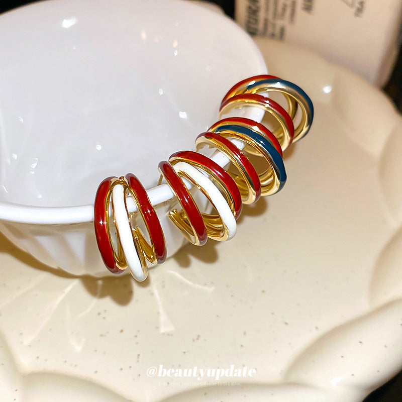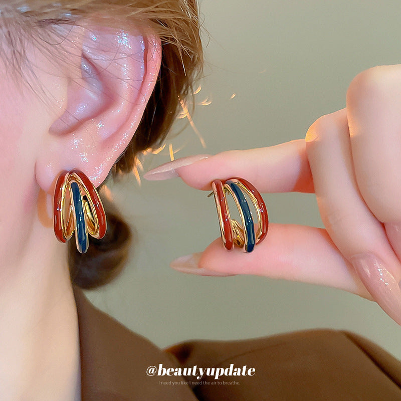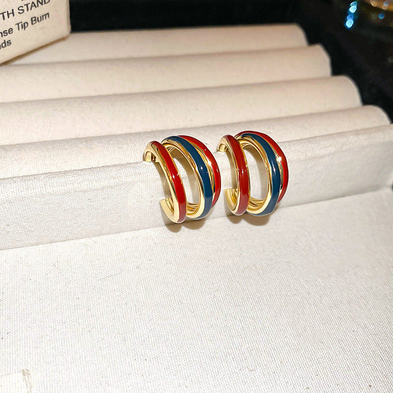 A廠【HE22583】925銀針滴油撞擊色鏤空耳環耳環簡約時尚氣質耳環港風復古高級感耳飾女 24.09-4