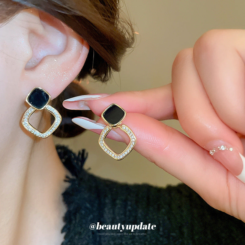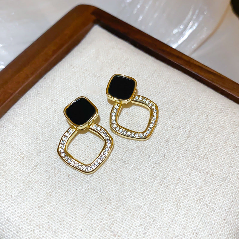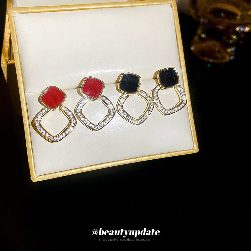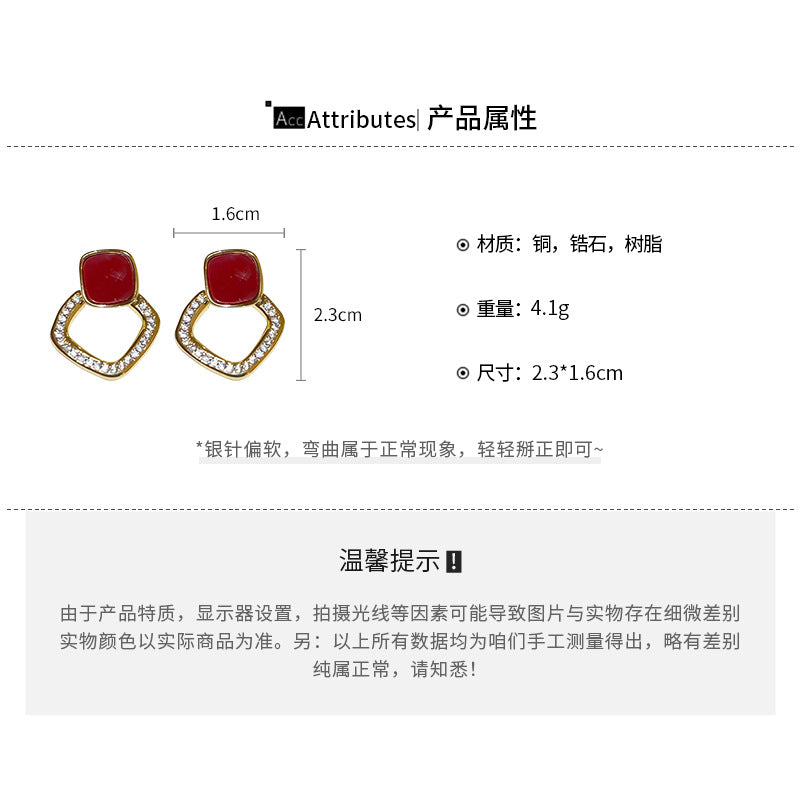 A廠【HE22803】真金電鍍925銀針安可拉紅鑲鑽方形耳環簡約設計感耳環精緻高級感耳飾 24.10-2