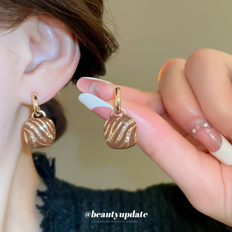 A廠【HE22833】925銀針美拉德復古條紋滴油耳環簡約氣質耳環港風復古高級感耳飾 24.10-2