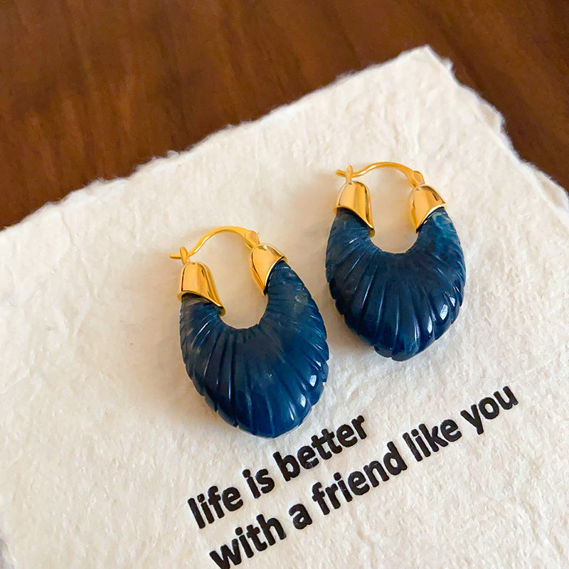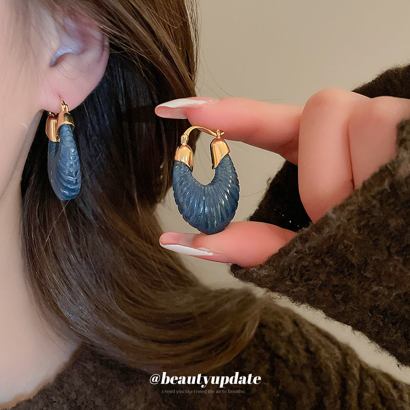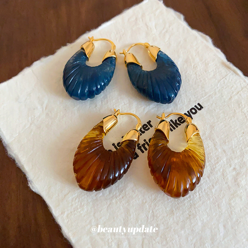 A廠【HE22853】真金電鍍U形條紋樹脂耳扣跨境個性設計感耳環復古耳環小眾高級感24.10-3