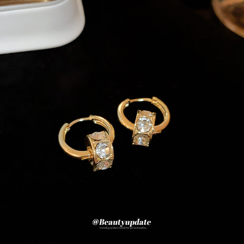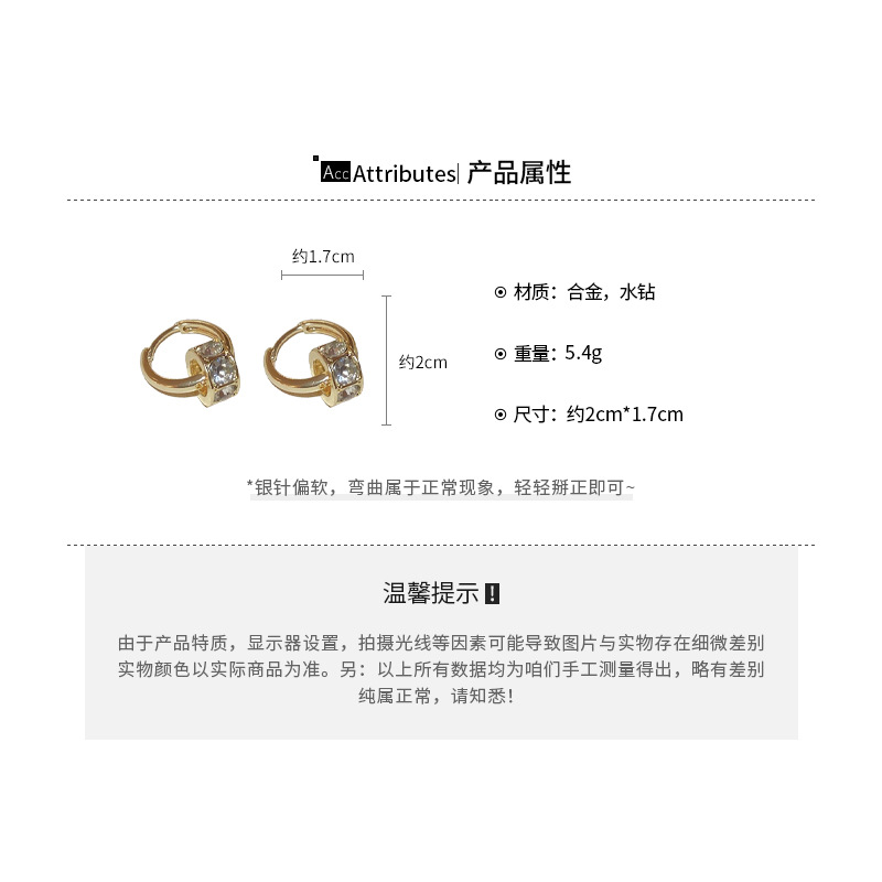 A廠【HE22916】時尚設計感鑲鑽環圈耳扣簡約日常通勤耳環2024新款輕奢氣質耳圈女24.10-3