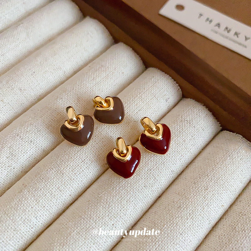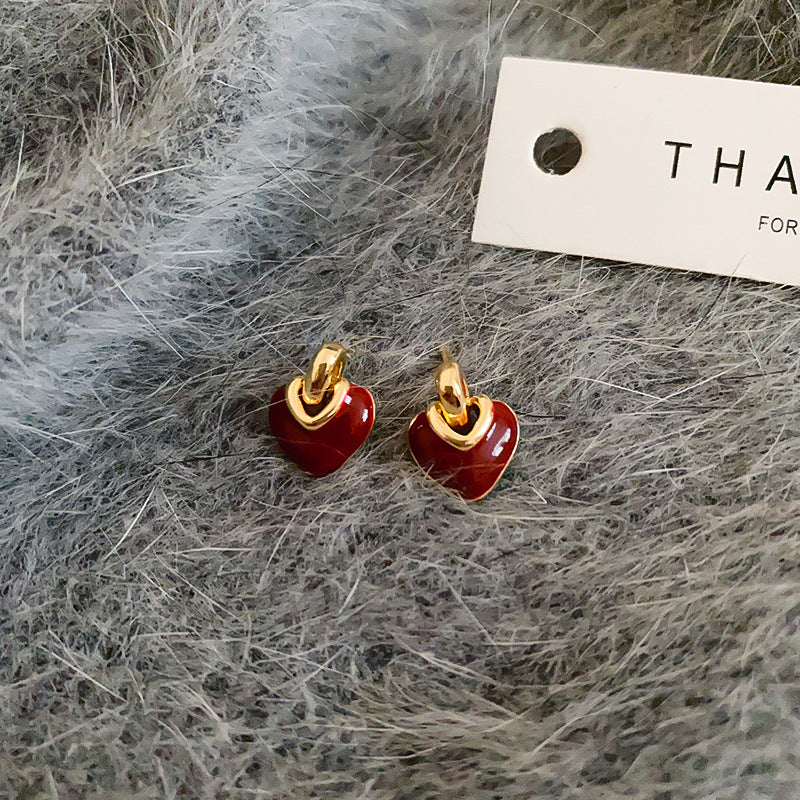 A廠【HE22987】真金電鍍925銀針滴油愛心耳環女氣質耳環時尚百搭耳飾簡約小眾高級感24.10-3