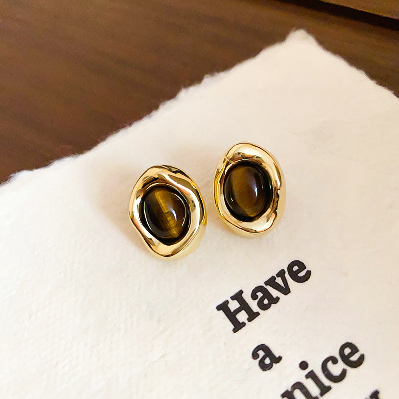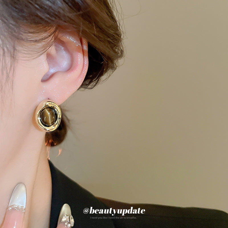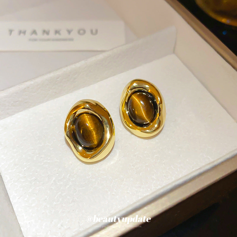 A廠【HE23003】真金電鍍925銀針不規則虎眼石圓形耳環復古耳環時尚耳環小眾高級感24.10-3